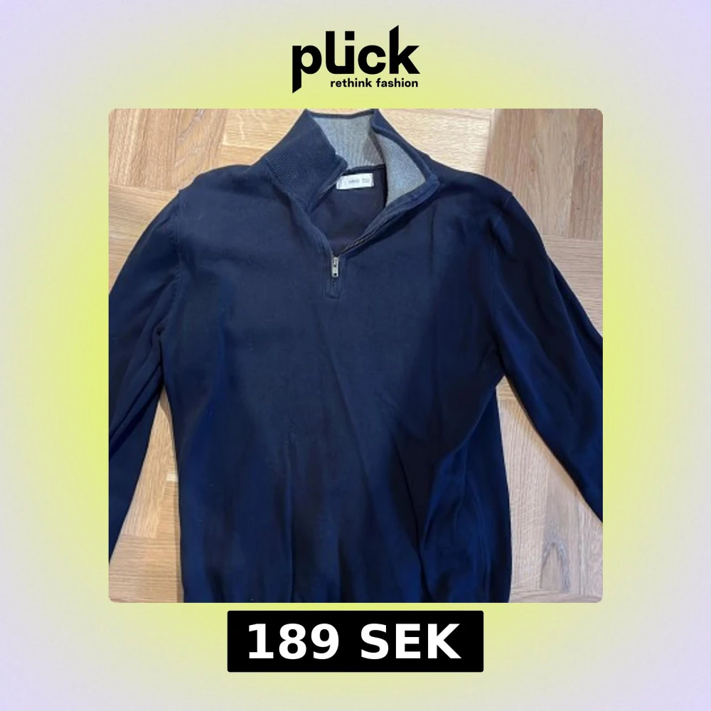 En blå half zip tröja från mango. Tröjan är använd men är i väldigt bra skick och har inga defekter över huvud taget. Perfekt för vardagen eller varför inte till en fest med en skjorta under.
