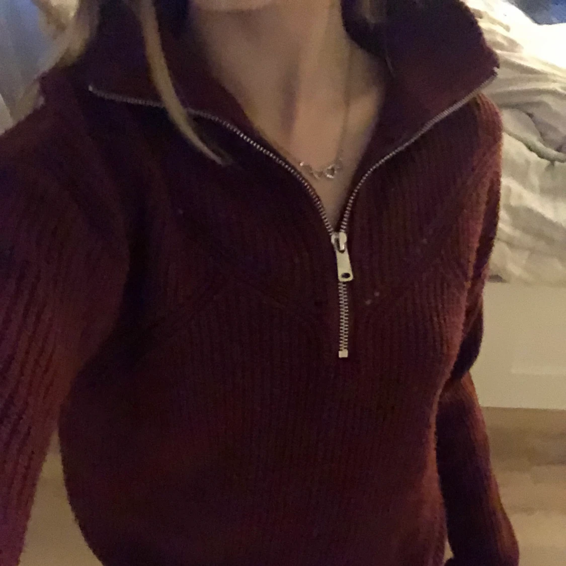 Helt oanvänd tröja ifrån Bikbok (den finns ej kvar) jättefin bra passform, vinröd skulle jag säga. Köpte för 300 tror jag