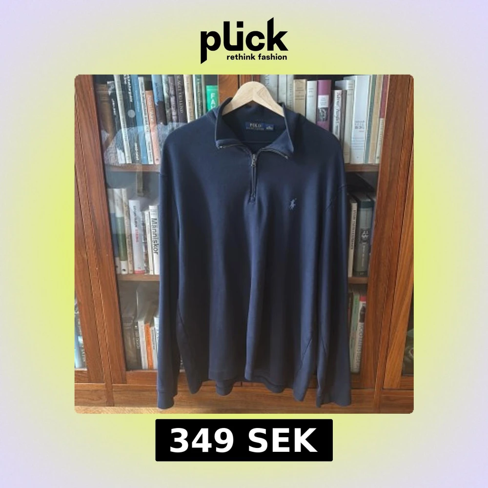 Säljer en stilren marinblå långärmad tröja från Polo Ralph Lauren med klassisk broderad logga på bröstet. Tröjan har en snygg half zip-dragkedja vid kragen och är gjord i mjuk bomull. Perfekt för lager-på-lager och chill vardagsstil.