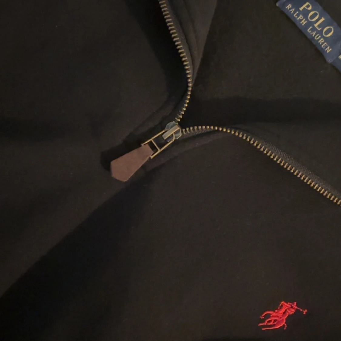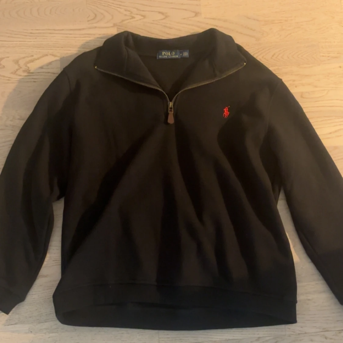 Skicka dm för video/prisförslag. Svart långärmad tröja från Polo Ralph Lauren med half zip och klassisk röd broderad logga på bröstet. Tröjan har en mjuk bomullskänsla och stilren krage. Perfekt för dig som gillar enkel och snygg design med en touch av lyx.