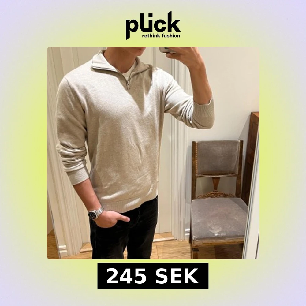 Snygg beige tröja från Jack & Jones med half zip och hög krage. Tröjan är i mjuk bomull, har ribbade muddar och en clean look som passar perfekt till jeans eller chinos. Enkel att styla och riktigt skön att bära. Inga defekter. Nypris 500kr. Skriv vid minsta fundering🙌