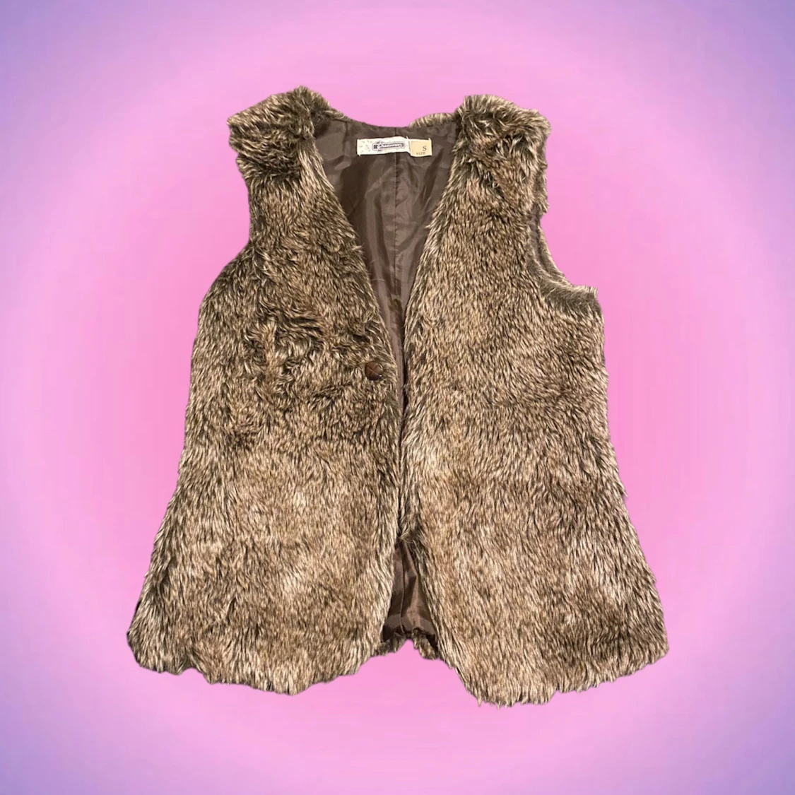 Så snygg och mysig pälsväst!💗 Har sytt dit en knapp så den går att stänga och den är i fint skick🙌🏼😍 Sitter bra på mig som oftast bär strlk S men funkar på XS och M också! Skriv privat vid intresse!