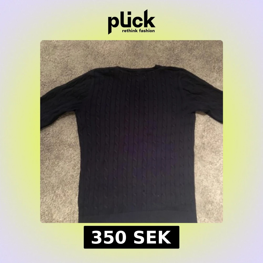 Snygg mörkblå stickad tröja från Hampton Republic med klassiskt kabelstickat mönster och rund hals. Tröjan har ett broderat vitt emblem med siffran 27 på bröstet och ribbade muddar vid ärmslut och nederkant. Perfekt för dig som gillar preppy stil.