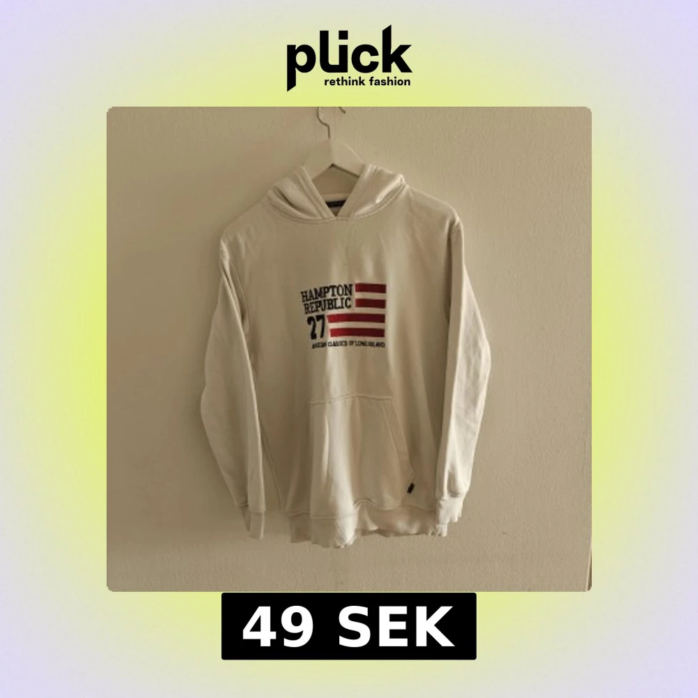 Vit hoodie från Hampton Republic med tryck och röda ränder framtill. Klassisk känguruficka, huva och ribbade muddar. Mjuk insida i bomullsblandning, perfekt för chill dagar. Snygg och enkel att matcha med jeans eller joggers.