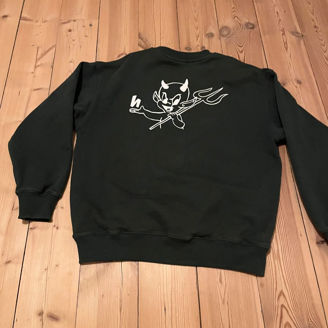 Hej säljer en mörkgrön harlaut tröja i storlek M, tröjan är i bra skick