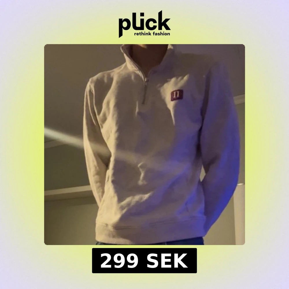 Säljer en beige långärmad tröja från les deux med half zip och ståkrage. Tröjan har ett litet lila HH-märke på bröstet och är tillverkad i mjukt material som passar perfekt för chill dagar. Enkel och clean design.
