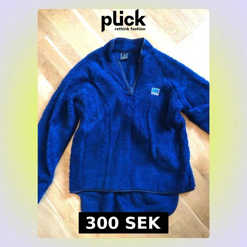 Klassisk blå fleece från Helly Hansen med halv dragkedja och broderad logga på bröstet. Långärmad. Storlek small (men’s 46-48, ladies 40-42). Fint skick.