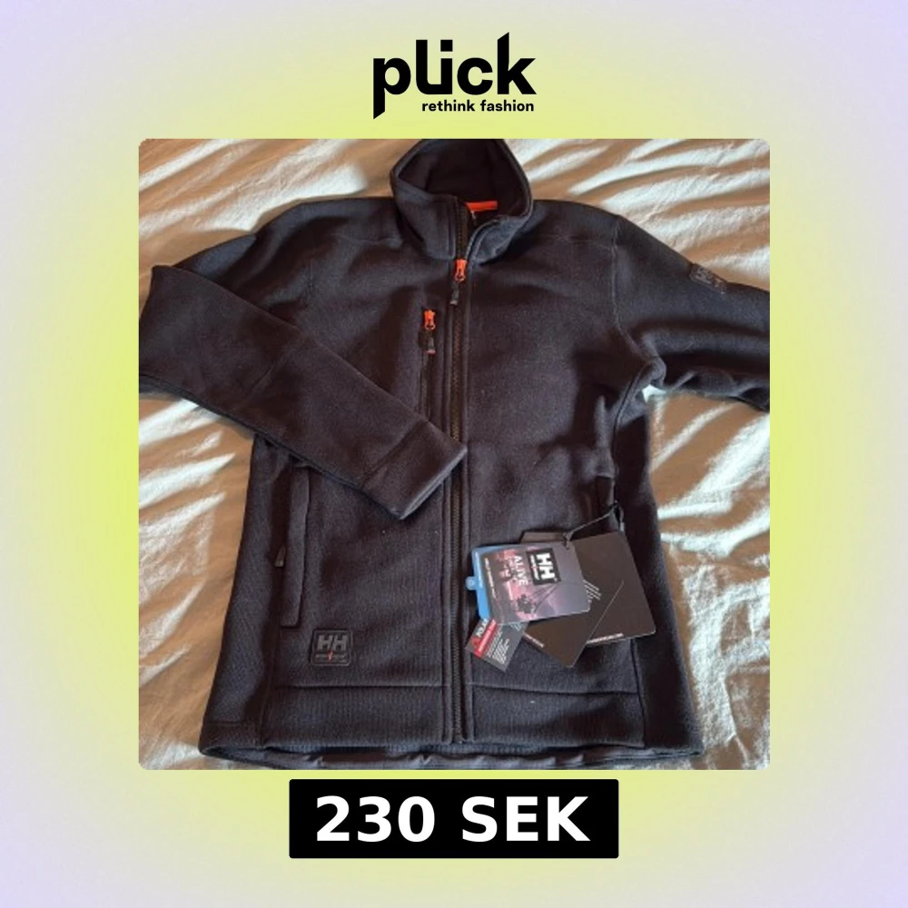 Svart fleecejacka från Helly Hansen Workwear med orange detaljer på dragkedjorna. Jackan har hög krage, två sidofickor med dragkedja och HH-logga på ärmen. Perfekt för kyliga dagar och enkel att matcha.