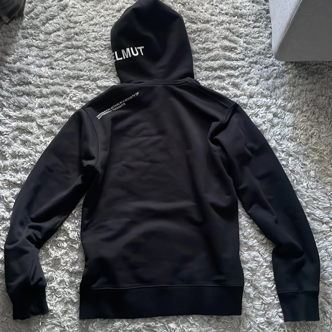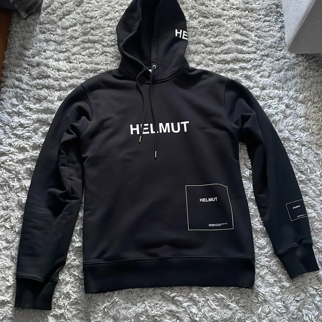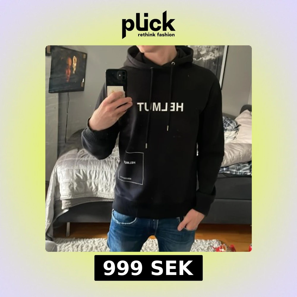 Säljer nu denna sjukt snygga Helmut Lang hoodien, den är i storlek XS men sitter som en S. Jag är 177 cm och väger 65 kg.