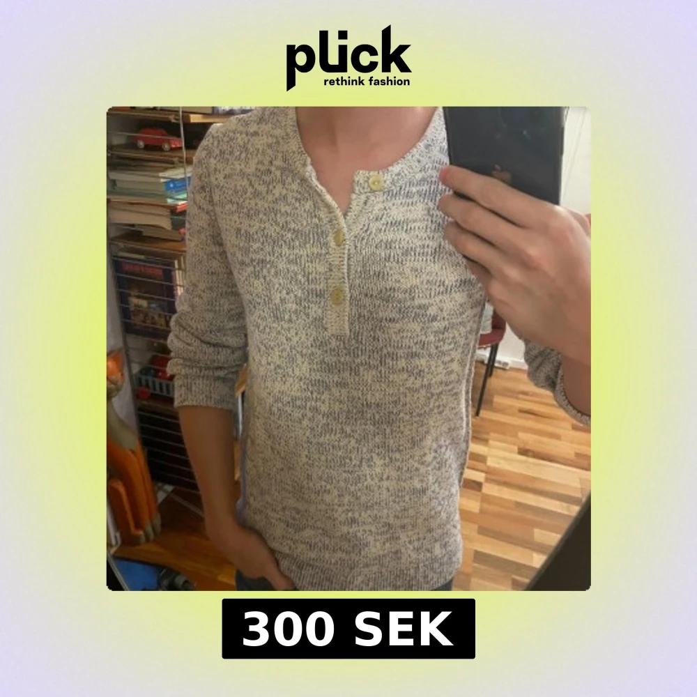 Säljer en vit och blå stickad henleytröja från Esprit med snyggt melerat mönster. Tröjan har lång ärm, rund hals och tre knappar framtill som ger en chill look. Köpt på second hand, men har aldrig använt. Helt felfri. Kan tänka mig gå ner i pris vid snabb affär.