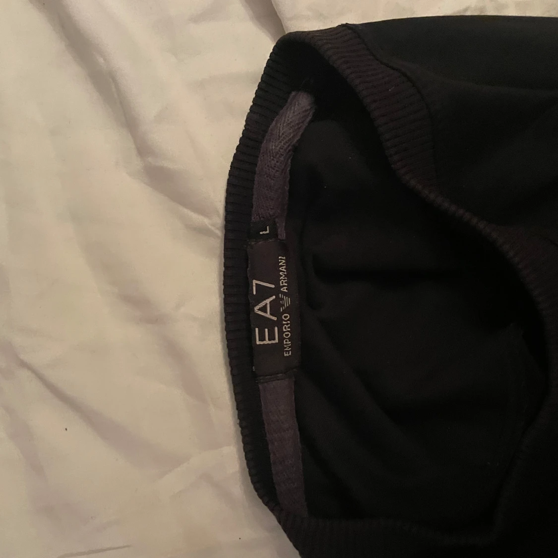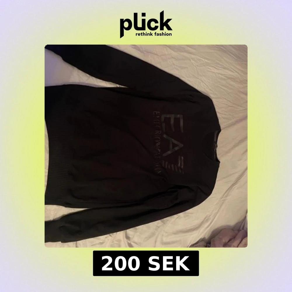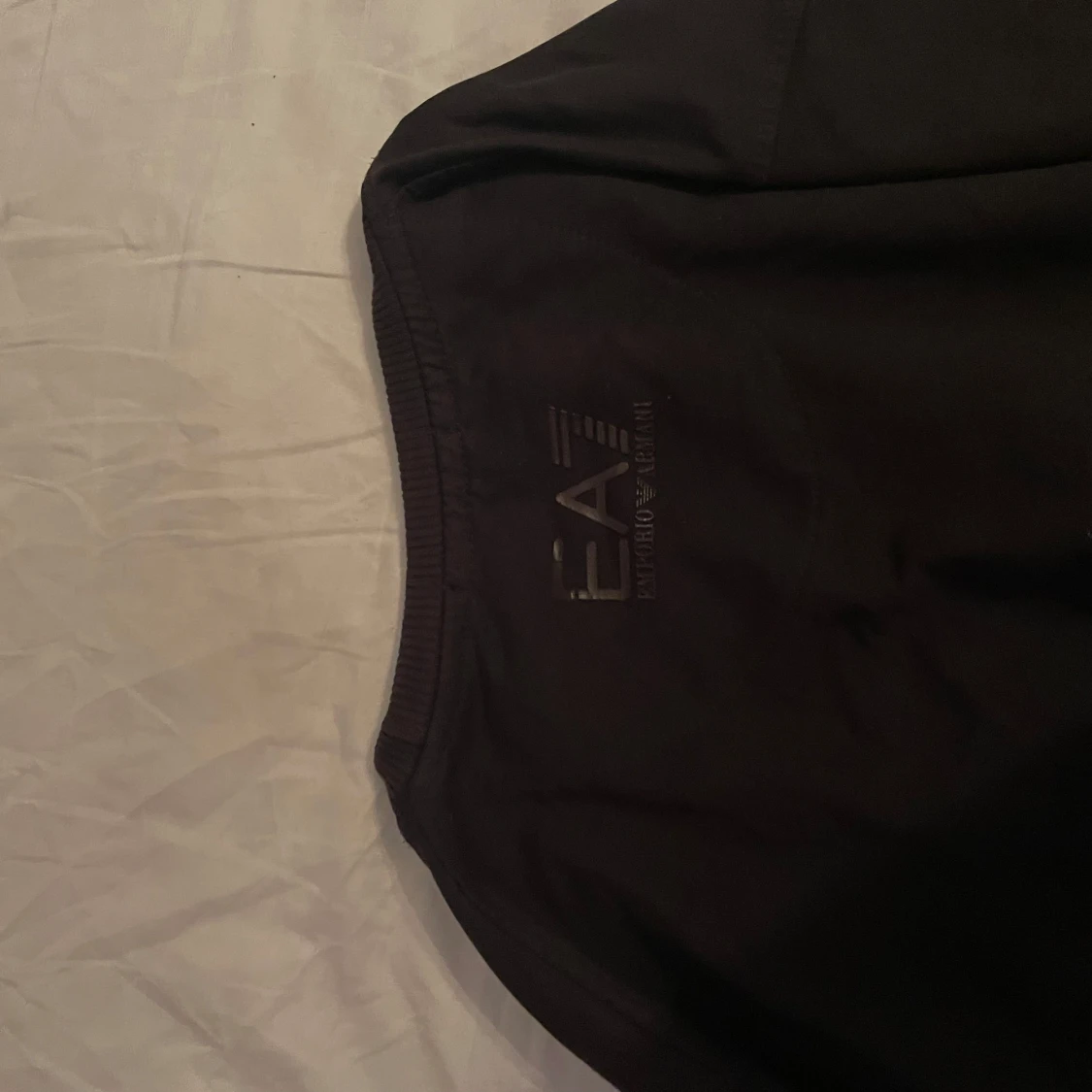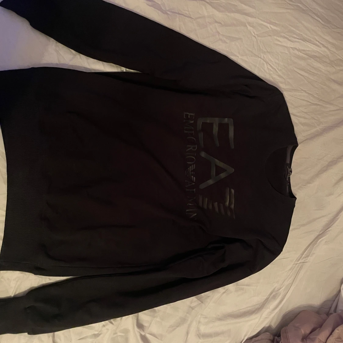 Säljer en svart sweatshirt från Emporio Armani EA7 med diskret logga på bröstet. Tröjan har rund halsringning och långa ärmar. Perfekt för en stilren och enkel look. Passar utmärkt till Storlek M