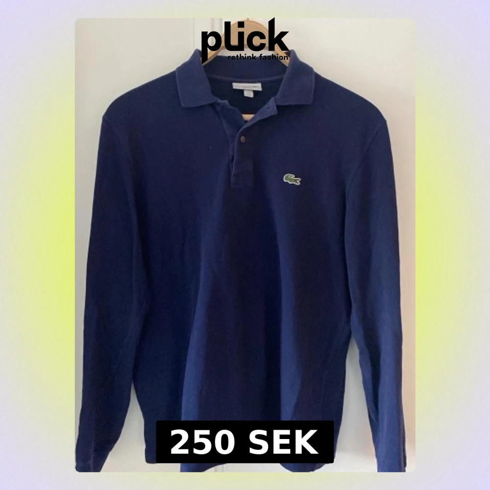 Klassisk mörkblå långärmad rugbytröja från Lacoste. Väldigt bra skick.