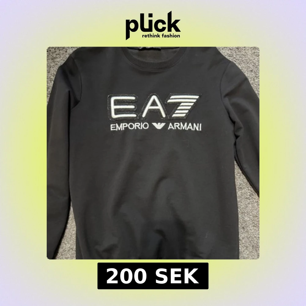 Säljer en svart långärmad sweatshirt från Emporio Armani EA7. Tröjan har ett stort broderat EA7-logo på bröstet i vitt och silver. Klassisk rund halsringning och mjukt material. Perfekt för en stilren och sportig look.