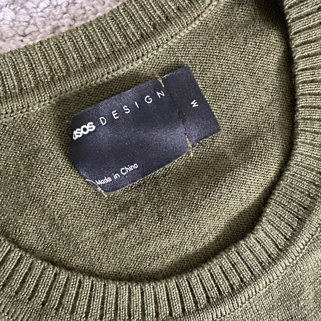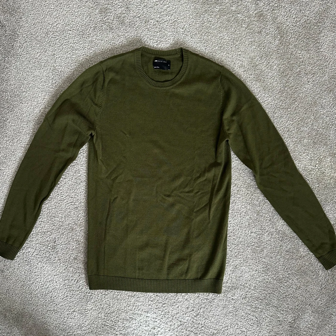 Säljer en olivgrön stickad tröja från ASOS DESIGN i storlek M. Material: 100% merinoull. Tröjan har rund halsringning, långa ärmar och ribbade muddar vid ärmslut och nederkant.