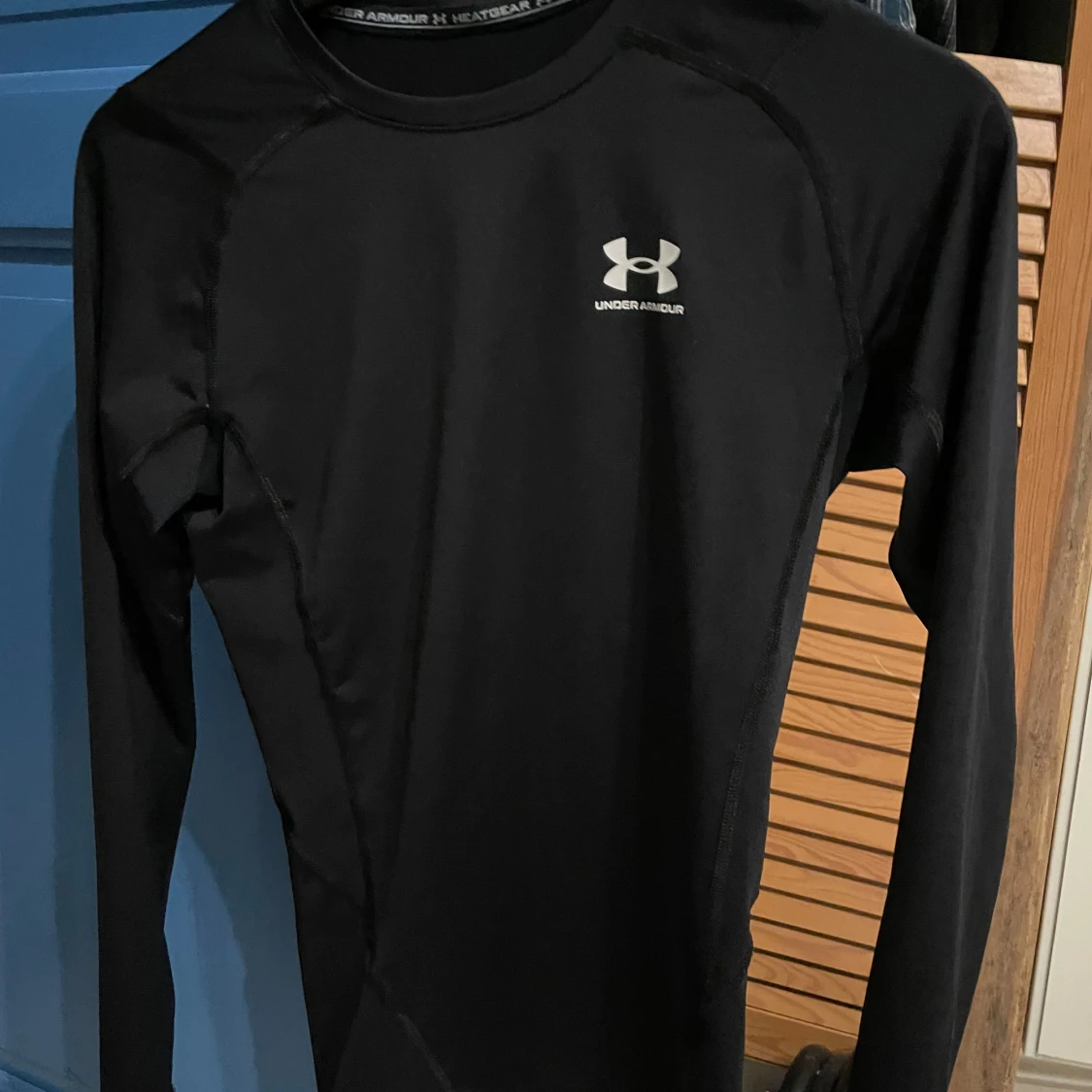 Säljer en svart långärmad kompressionströja från Under Armour HeatGear. Tröjan har en tight passform och är perfekt för träning eller sport. Klassisk logga på bröstet och tillverkad i syntetmaterial som andas. Och den har inga slitningar överhuvudtaget nypris ca.400