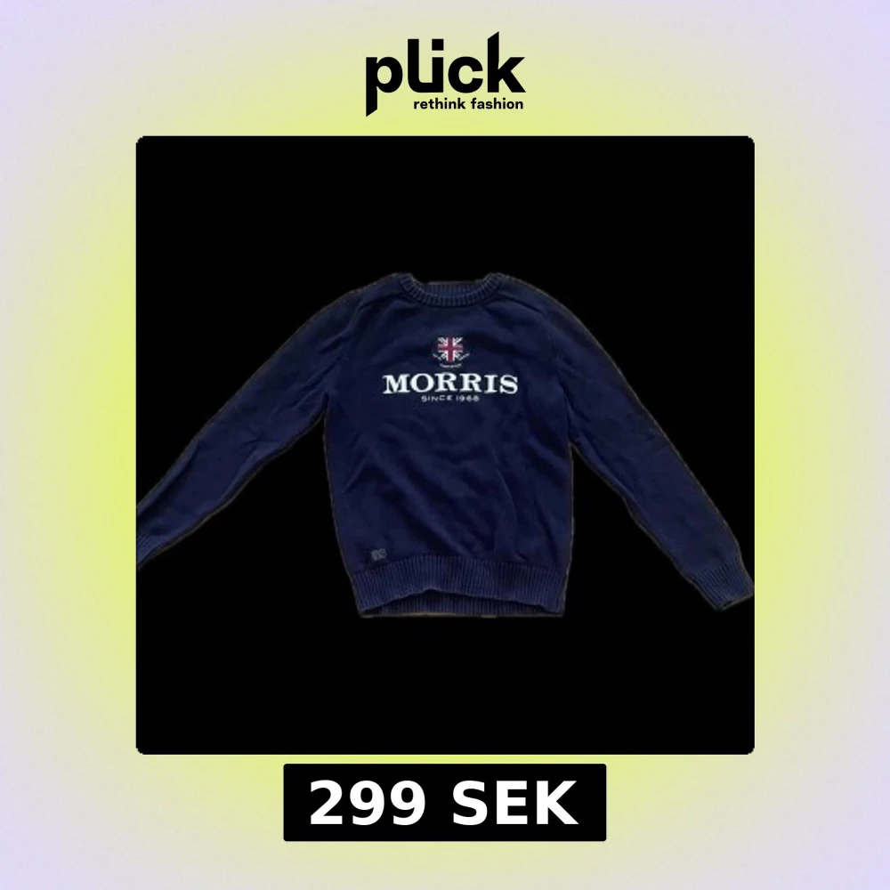 Mörkblå långärmad tröja från Morris Gents med rund halsringning. Framsidan har ett tryckt Morris-logo och brittisk flagga. Tröjan är ribbad vid ärmslut och nederkant, perfekt för en stilren och klassisk look.