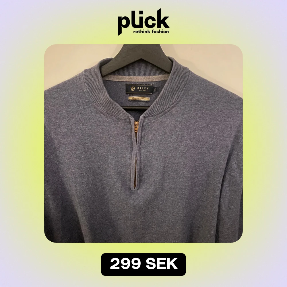 Säljer en stilren gammeldags blå tröja från Riley i storlek XL. Den är tillverkad av 100% bomull och har en praktisk dragkedja framtill. Perfekt för både vardag och lite finare tillfällen. Tröjan är i mycket bra skick och redo för en ny ägare!