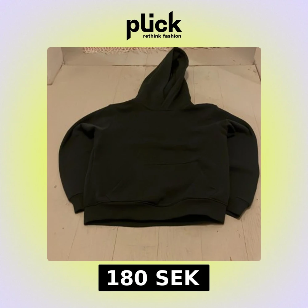 Mörk grön hoodie med huva och stor magficka. Insidan är fodrad med mjuk fleece som gör den extra skön och varm. Tröjan har en klassisk loose passform och ribbade muddar vid ärmslut och nederkant. Perfekt för chill dagar eller när du vill vara extra bekväm.