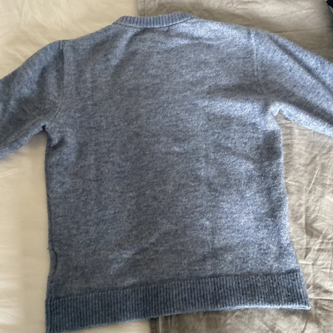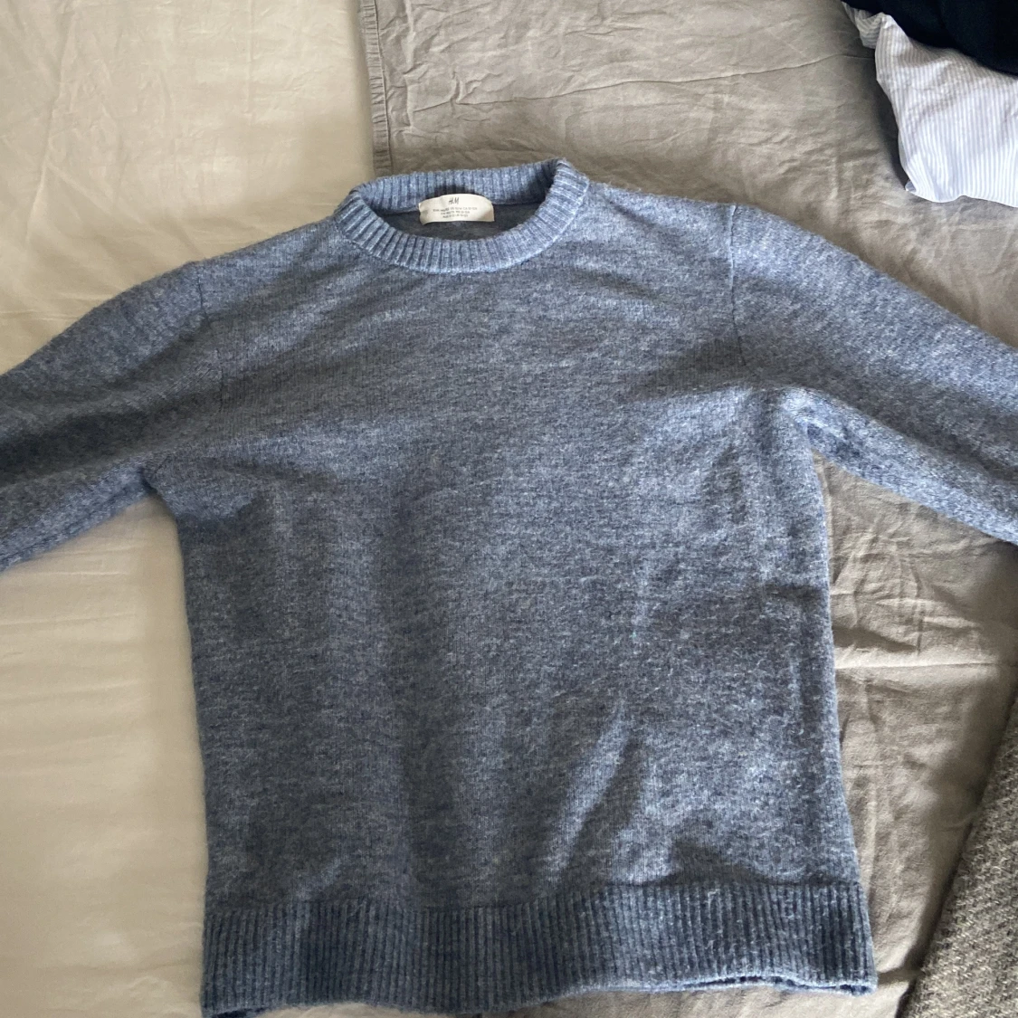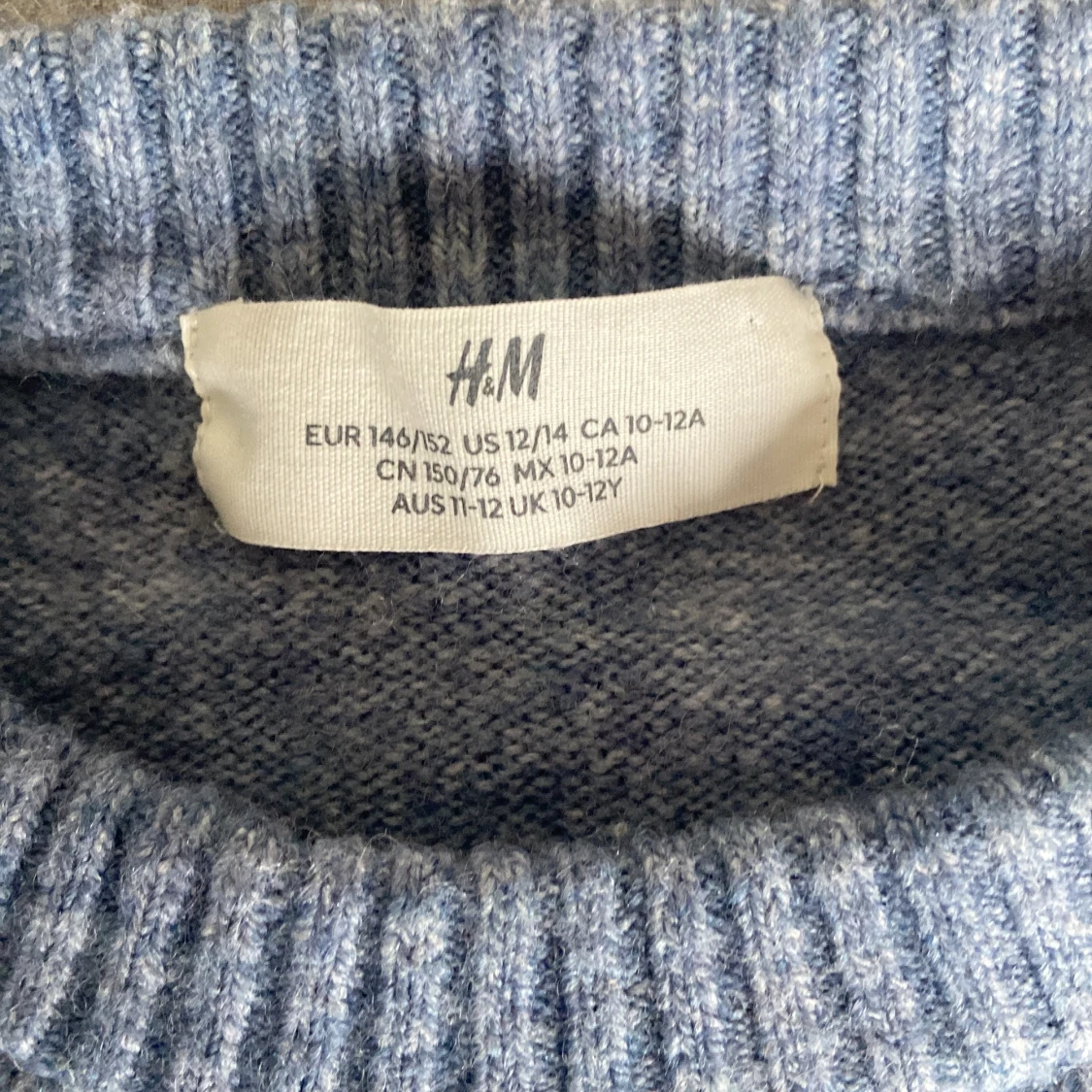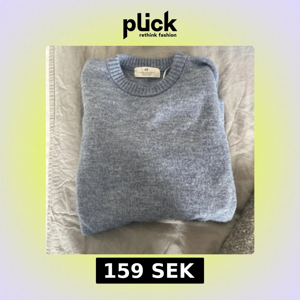 Ljusblå stickad tröja från H&M med rund halsringning och ribbade muddar vid ärmslut och nederkant. Perfekt för kyligare dagar och enkel att matcha med olika outfits. Storlek: 146/152 men passar mig som är 165/48kg! Tar byten! Kontakta vid frågor!