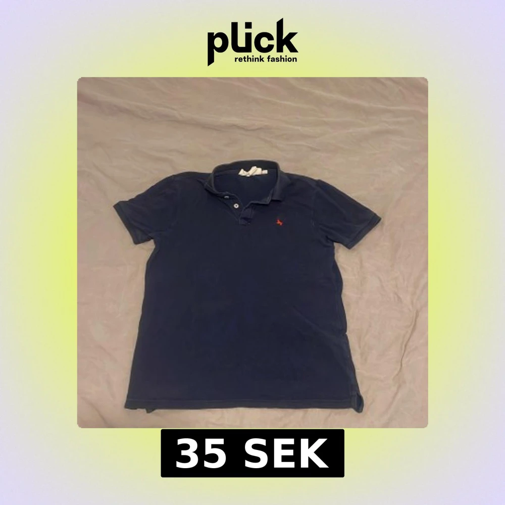 Snygg mörkblå pikétröja från H&M med klassisk krage och två knappar framtill. Tröjan har korta ärmar och en liten röd broderad logga på bröstet. Perfekt för en chill och stilren look.