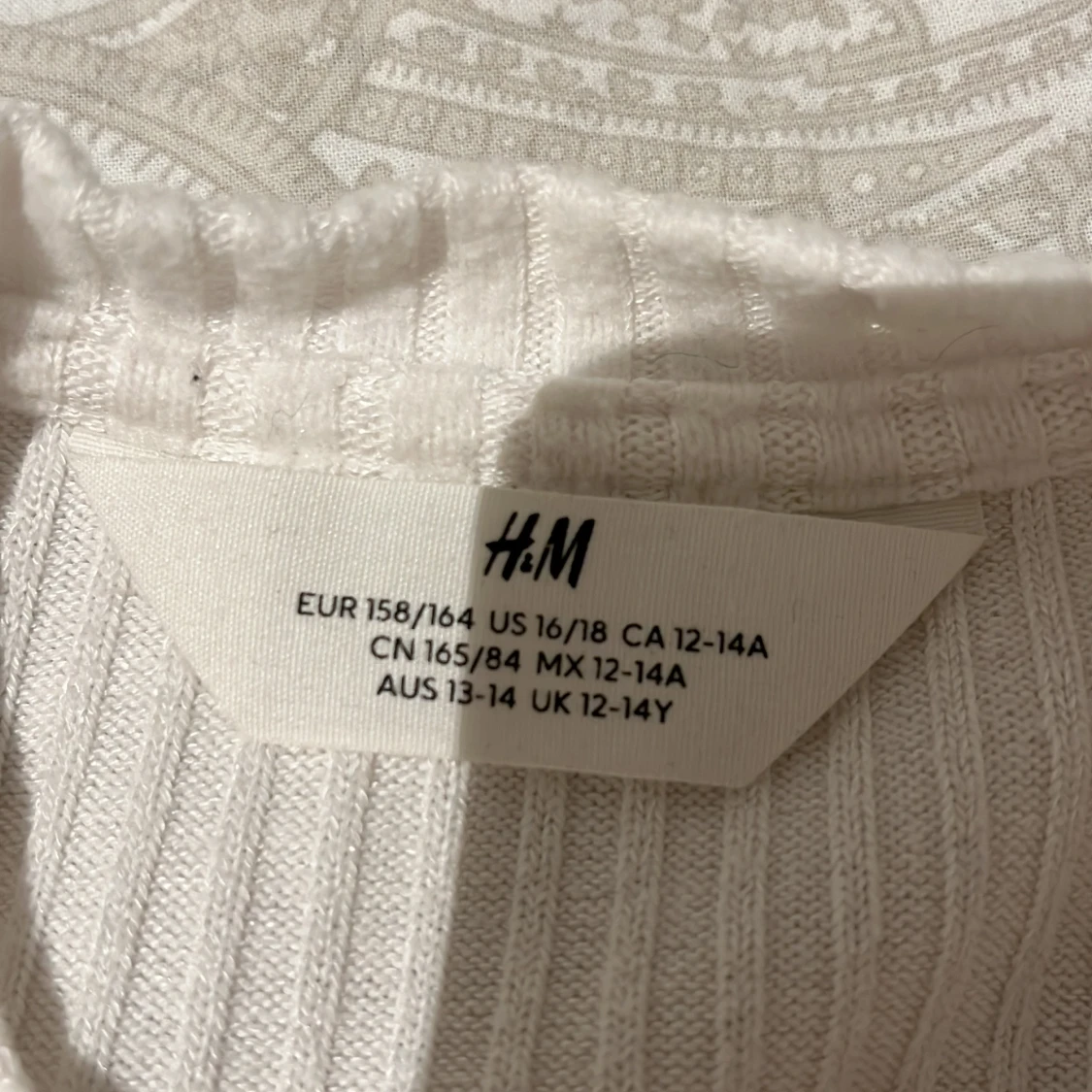 Säljer en stilren vit ribbad tröja från H&M. Tröjan har en avslappnad passform med långa ärmar och rund halsringning. Perfekt för en casual look eller att mysa i hemma. 🕊️