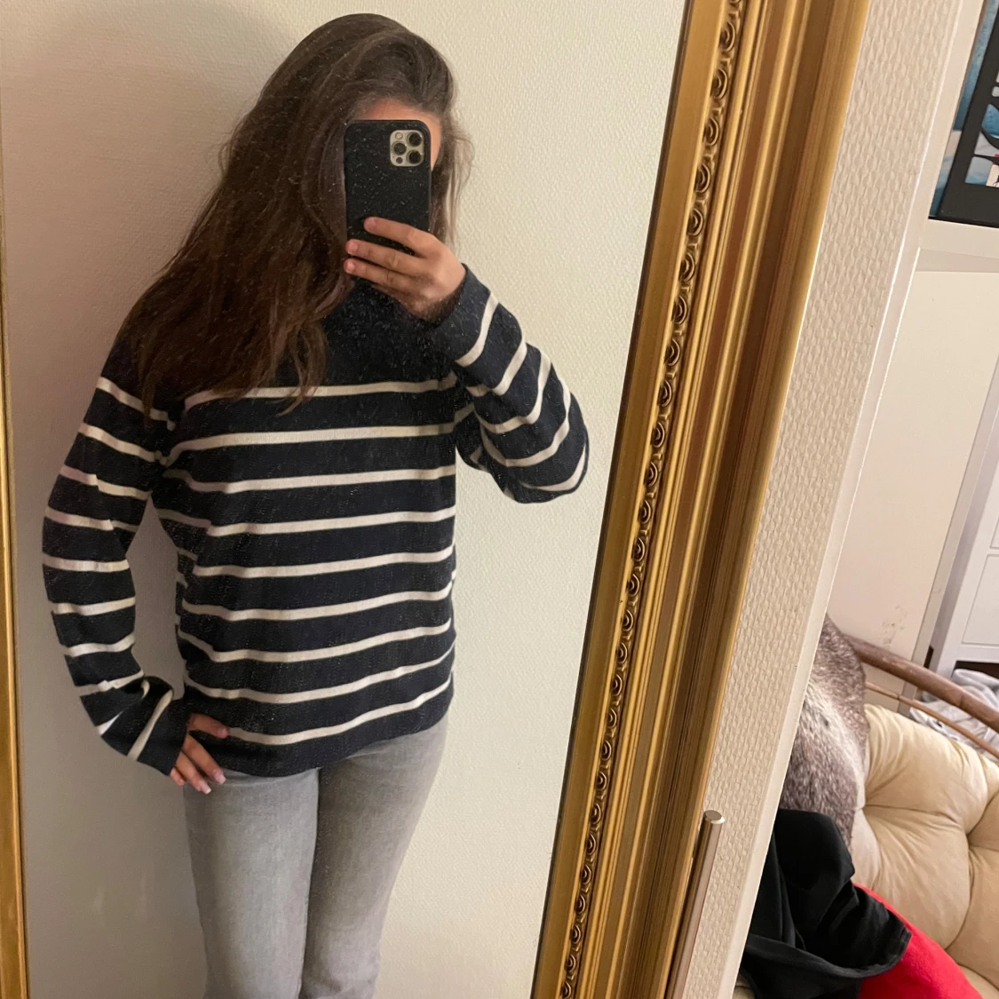 Mörkblå och vit randig tröja