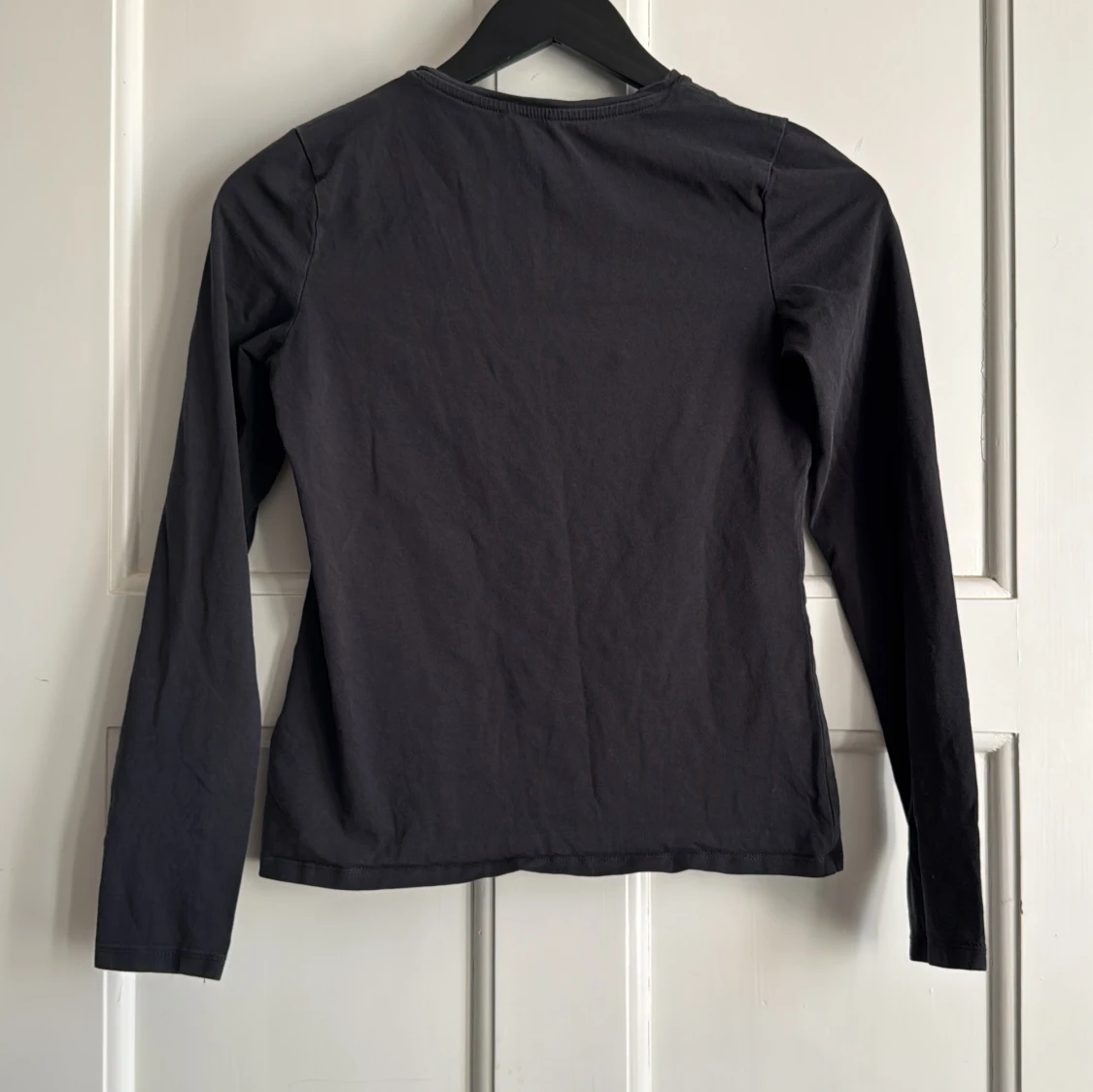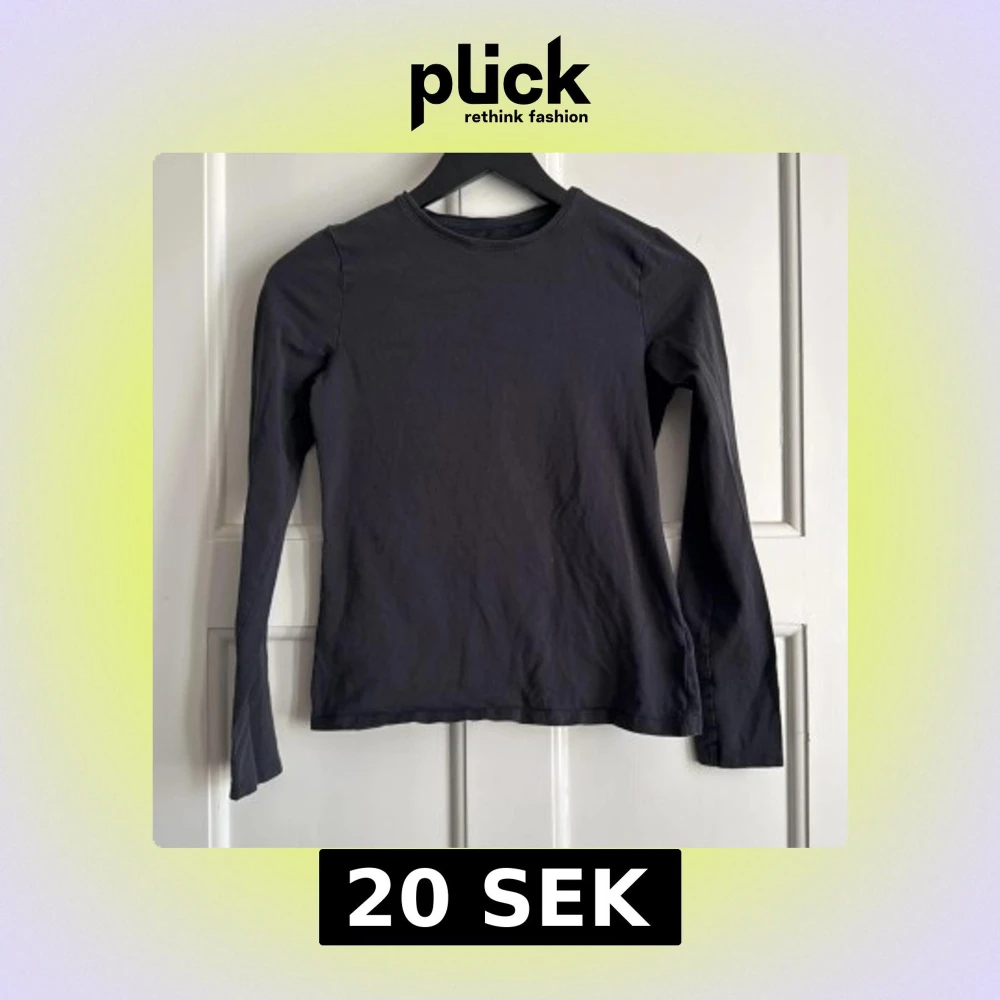 En enkel svart långärmad tröja från H&M i mjuk bomull. Tröjan har rund halsringning och en rak passform, perfekt att ha som basplagg i garderoben.