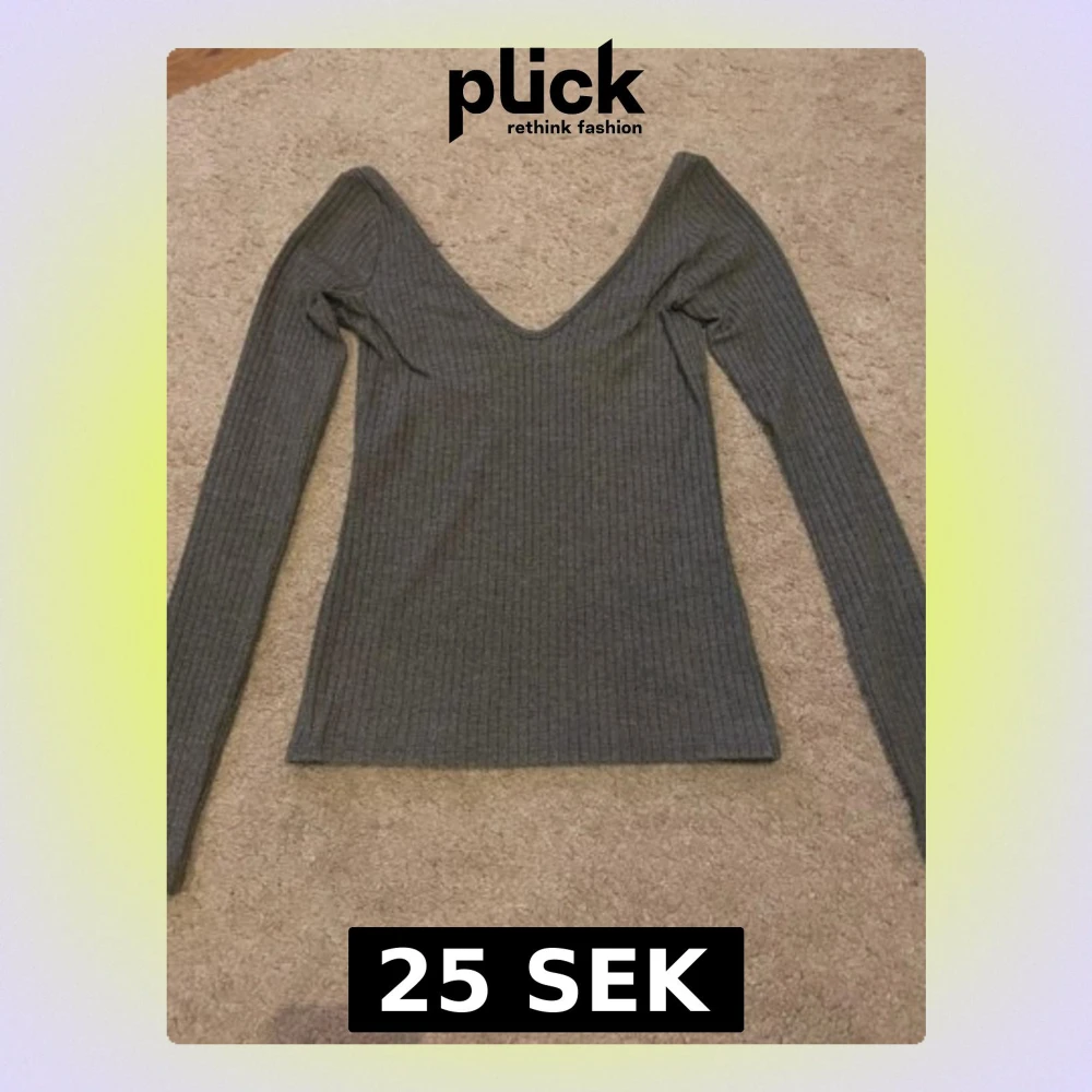 Säljer en grå ribbad långärmad topp från H&M i storlek 32. Toppen har en djup v-ringning och är figurnära i modellen. Perfekt att styla med jeans eller kjol för en chill och snygg look.