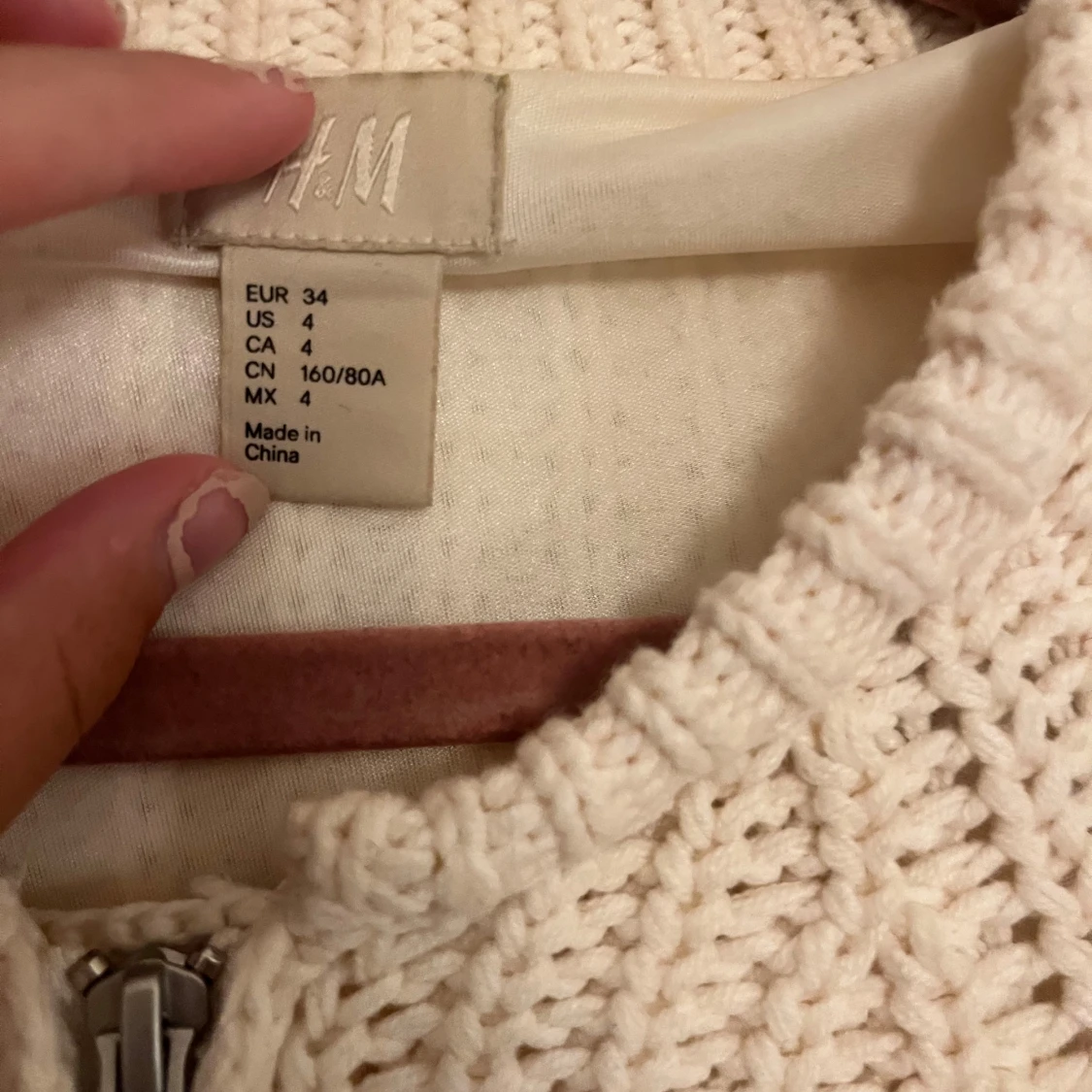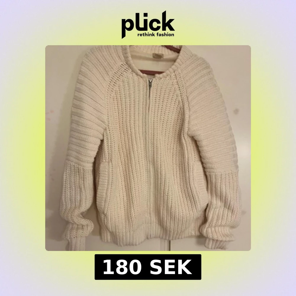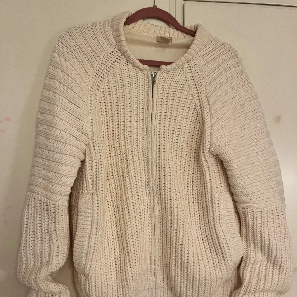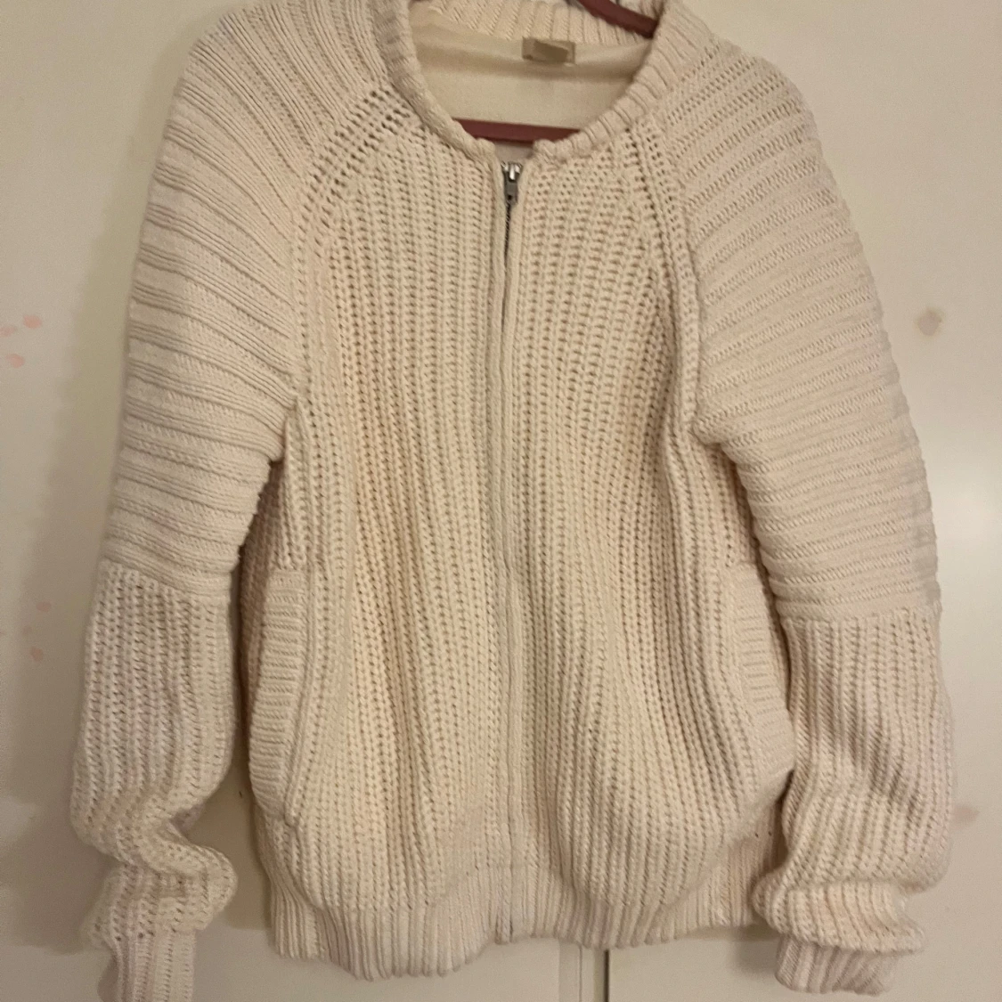 Mysig beige stickad kofta från H&M i storlek 34. Koftan har grovstickat mönster, långärmade ärmar och dragkedja framtill. Perfekt för lager-på-lager och chill dagar. Enkel och stilren design som funkar till det mesta.