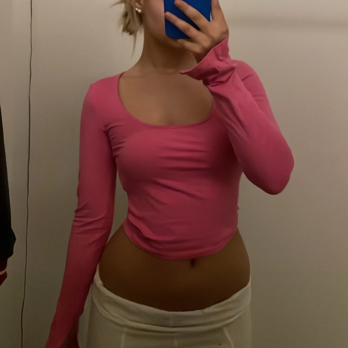 Rosa tröja med slits vid armarna