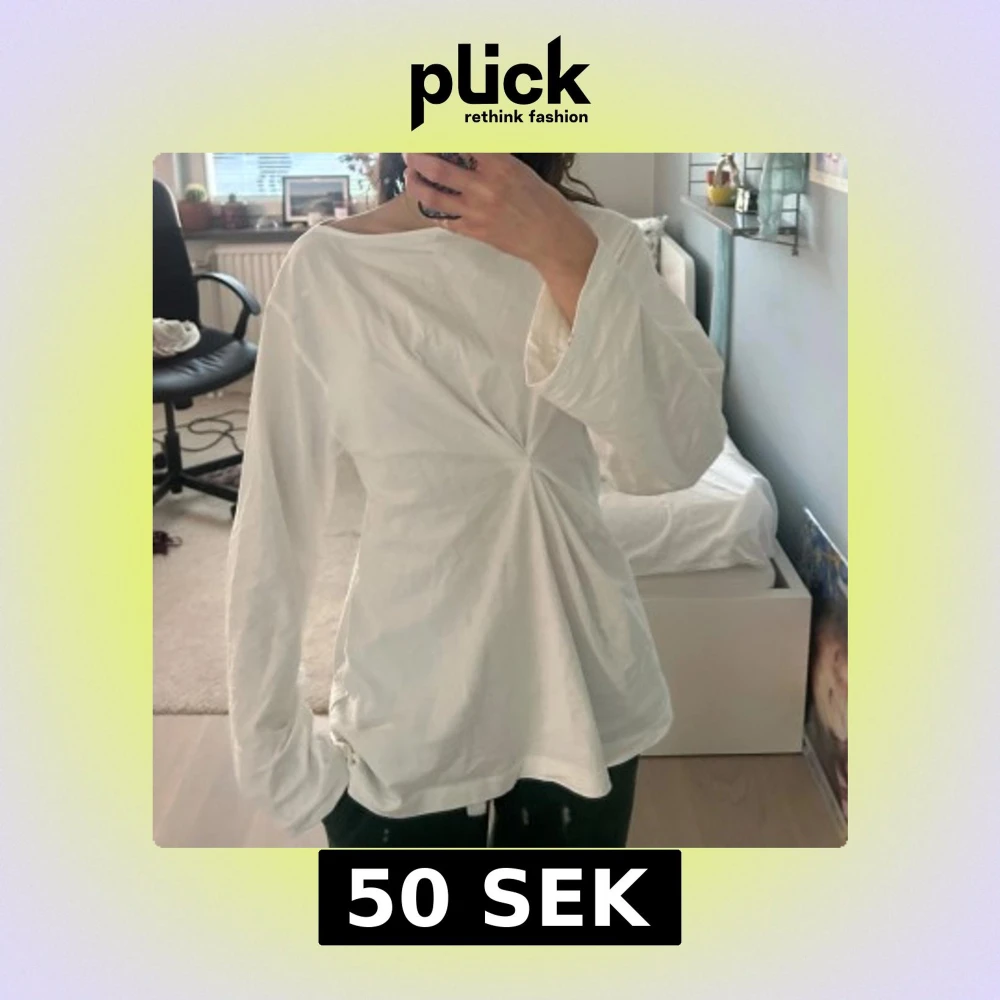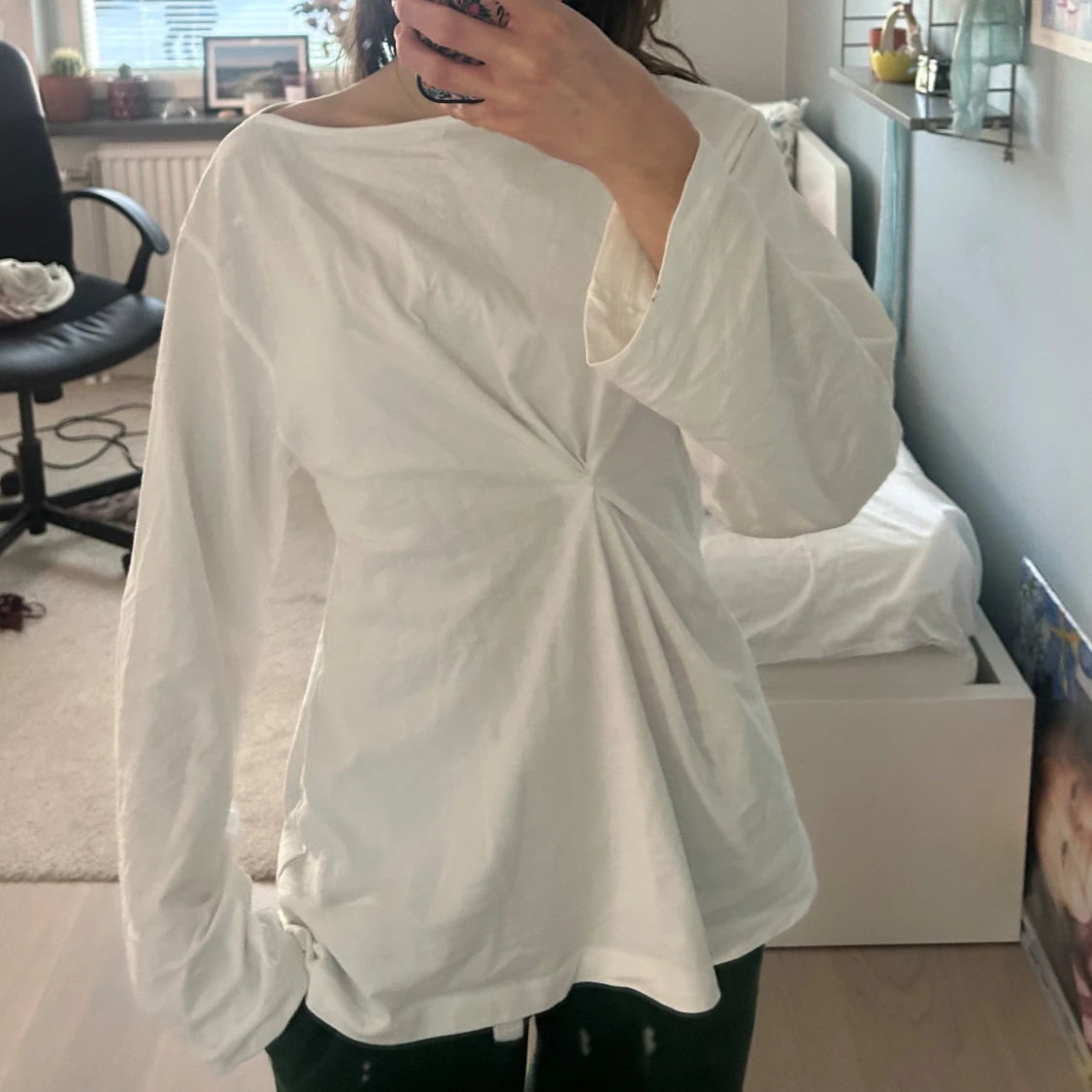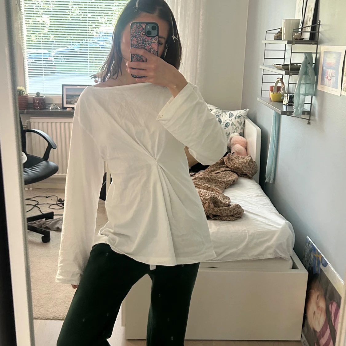 Jättecool långärmad med en knutdetalj på framsidan! Vit🤍 Har en liten fläck längst ut på höger arm, se sista bild!💫