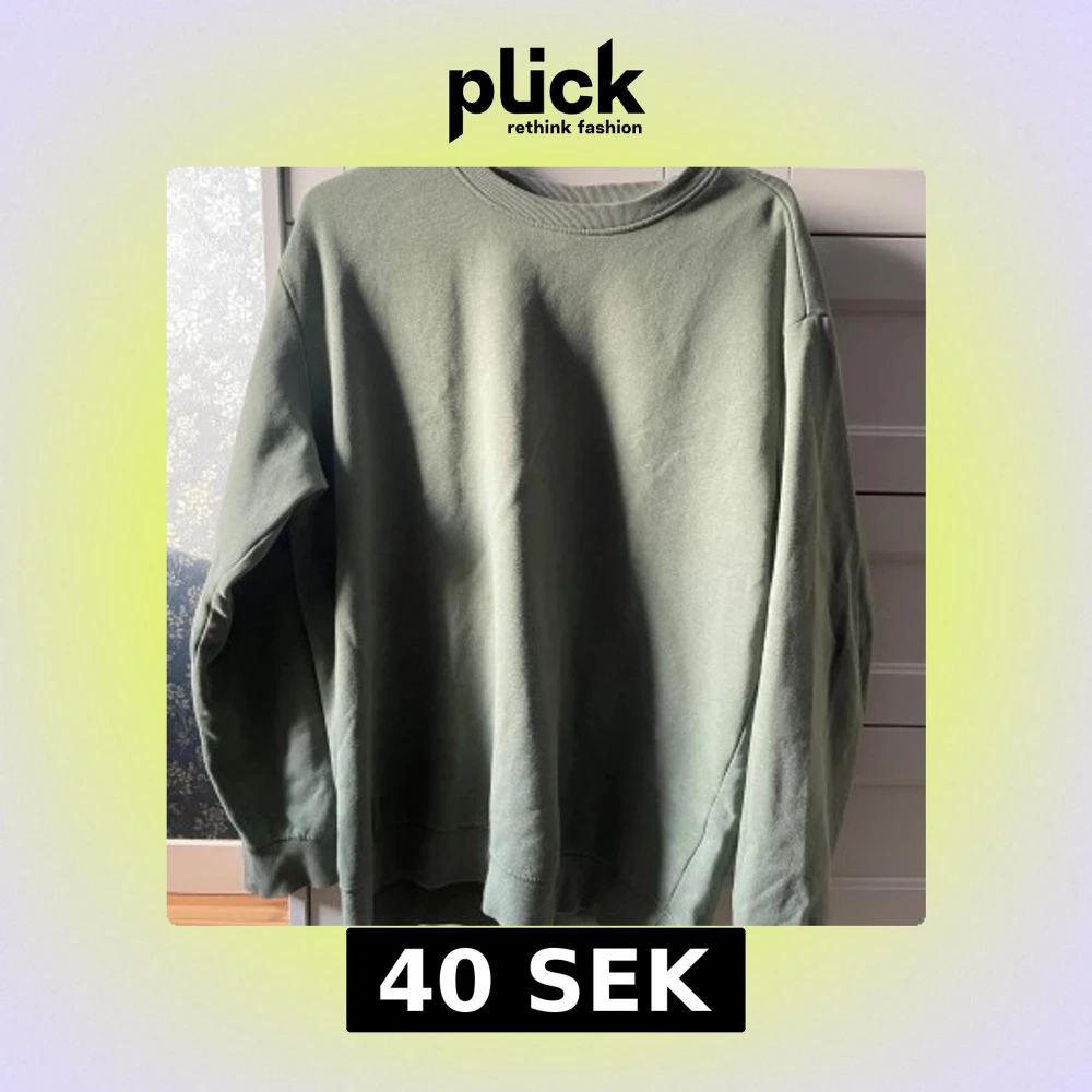 Säljer en stilren grön sweatshirt med rund halsringning. Tröjan har långa ärmar och ribbade muddar vid ärmslut och nederkant. Perfekt för en avslappnad stil.