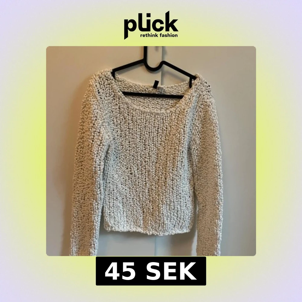 Mysig vit stickad tröja med grov struktur och lång ärm. Perfekt för kyligare dagar och enkel att matcha med olika outfits. Tröjan har en något lös passform och rund halsringning.