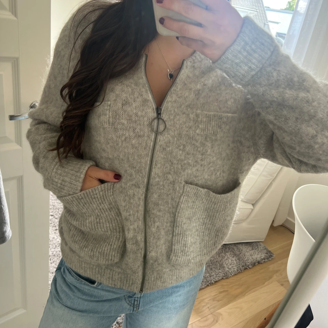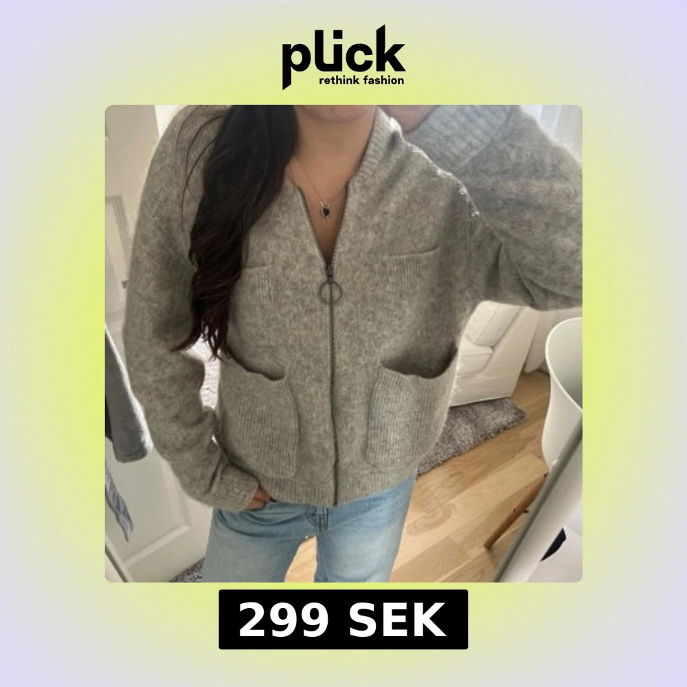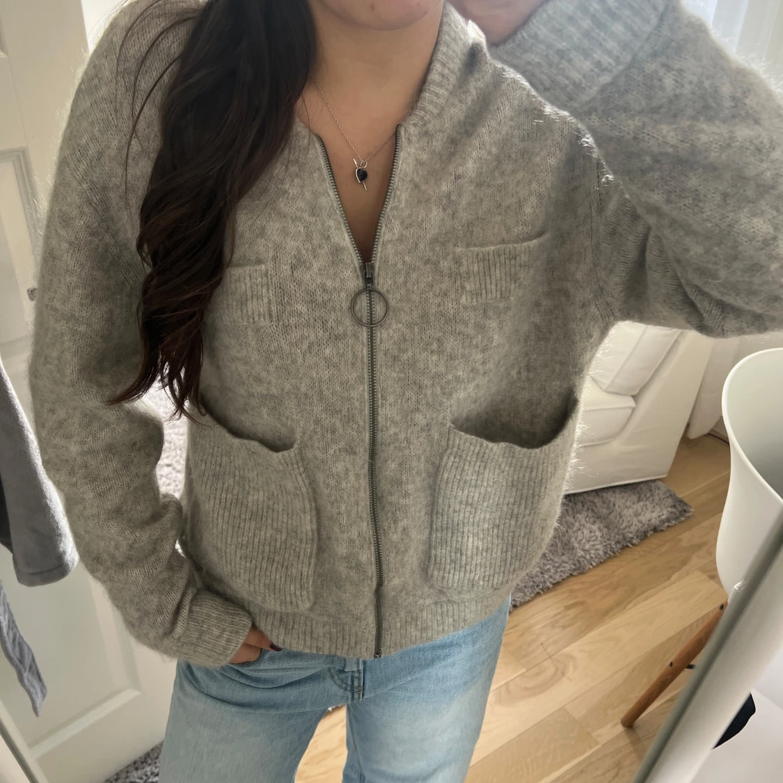 Grå stickad kofta med dragkedja