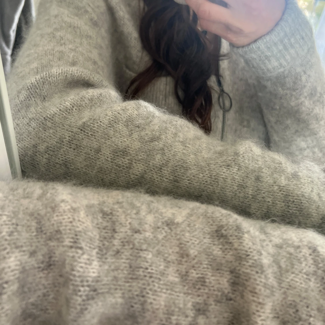 Mysig grå stickad kofta med dragkedja och två stora fickor framtill. Koftan har långa ärmar och en avslappnad passform, perfekt för lager-på-lager. Passar till det mesta och är superenkel att styla. Koftan är i äkta mohair!