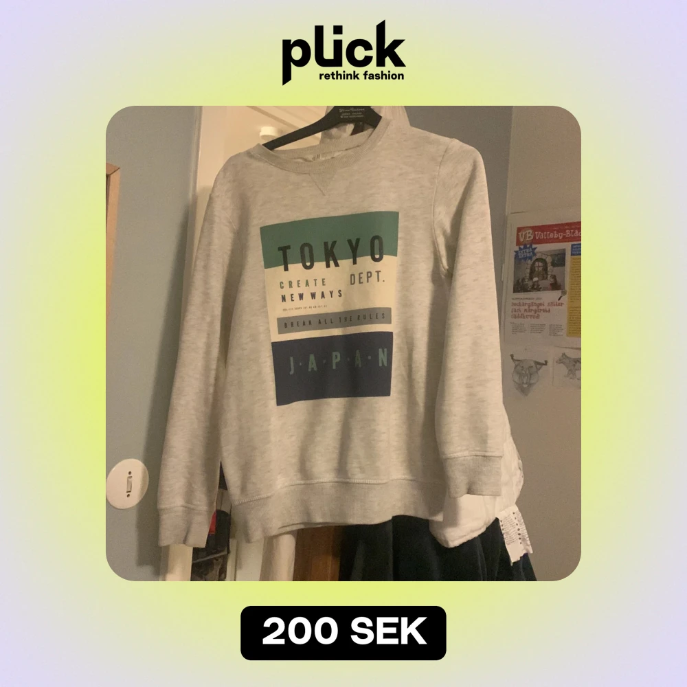 Säljer en grå sweatshirt från H&M i bra skick. Den har ett Tokyo-tryck på framsidan med texten 'Create New Ways'. Perfekt för en avslappnad stil och passar till alla årstider.