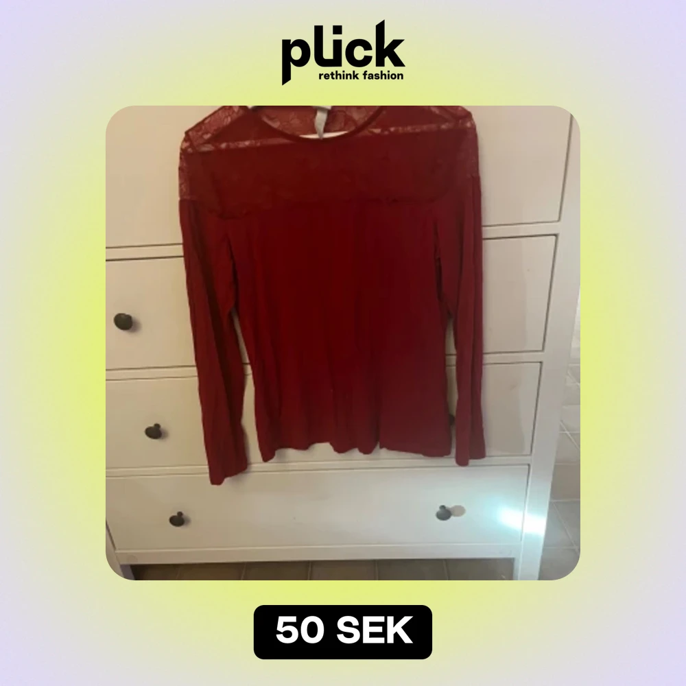 En elegant röd långärmad tröja med spetsdetaljer vid axlarna och övre delen av ryggen. Tröjan har en normal passform och är perfekt för höst- och vintergarderoben.