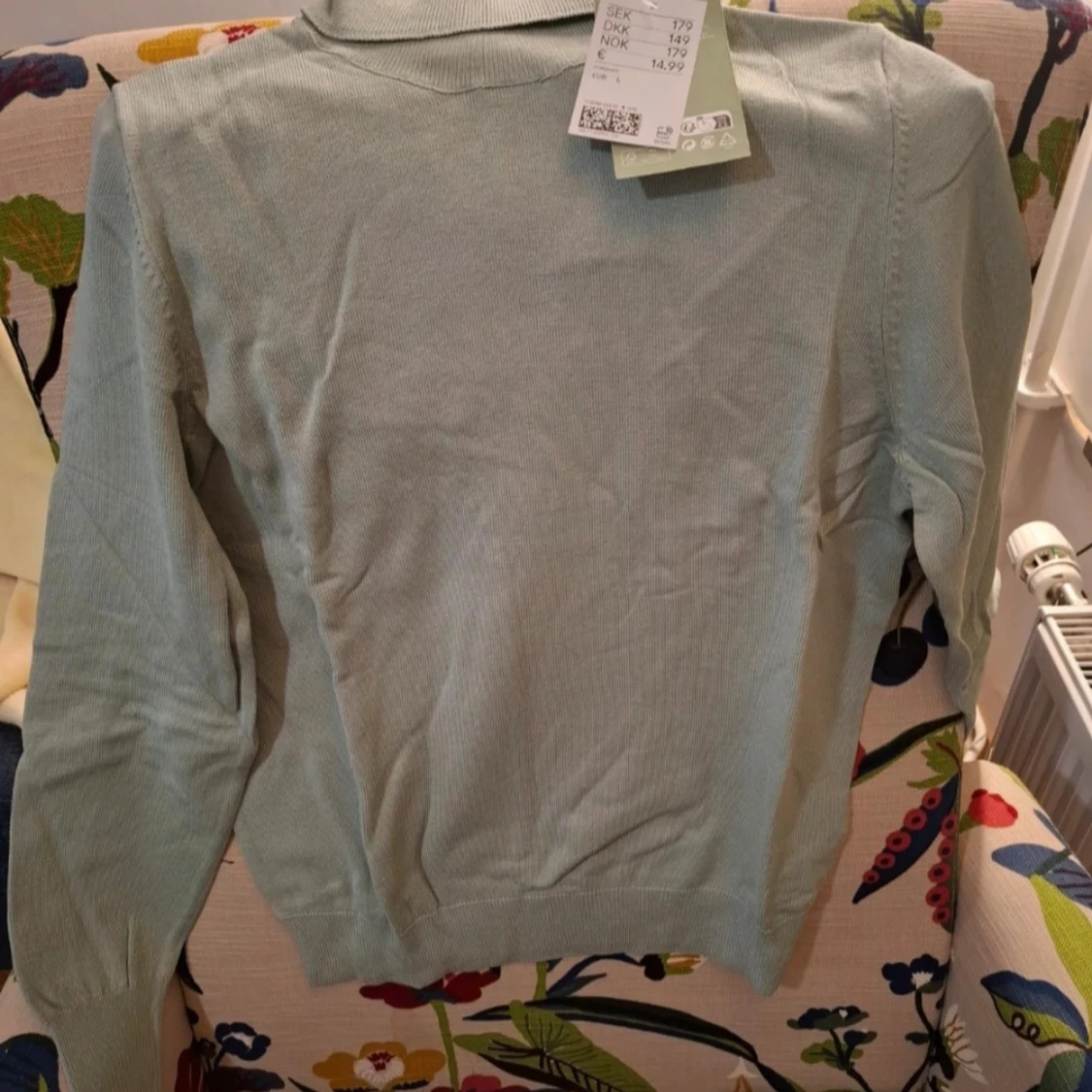 Säljer en ljusgrön polotröja från Lindex. Tröjan har lång ärm och är tillverkad i ett mjukt, tunt material som passar perfekt för lager-på-lager. Klassisk polokrage och ribbade muddar vid ärmslut och nederkant.