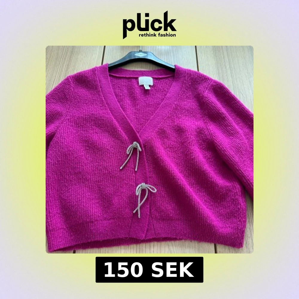 Säljer en ceriserosa stickad kofta från H&M med croppad passform. Koftan har långa ärmar, v-ringning och knytdetaljer framtill. Perfekt för att addera färg till din outfit!
