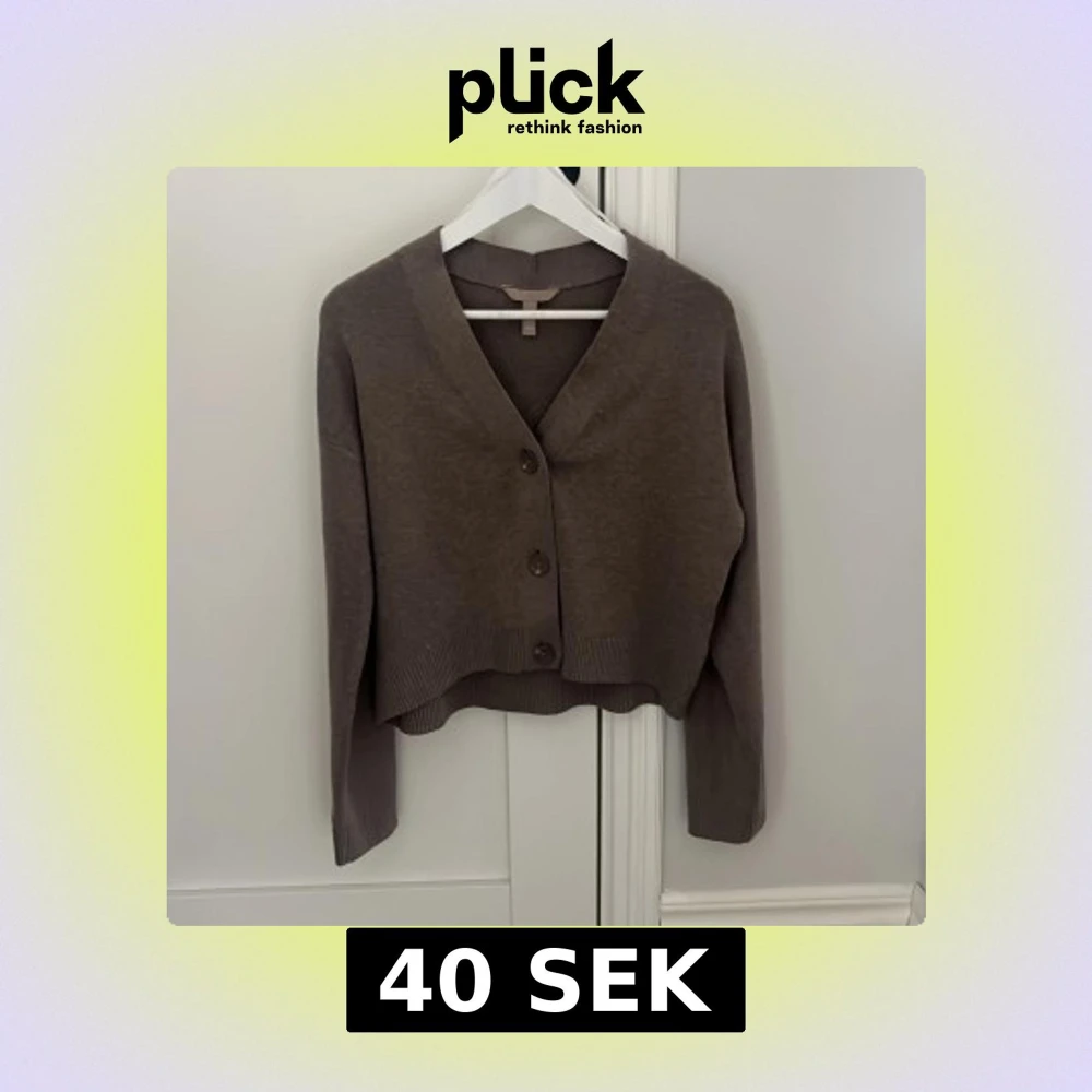 Mysig brun kofta från H&M med stora knappar framtill. Tröjan har långa ärmar och bred ribbad kant vid ärmslut och vid magen.