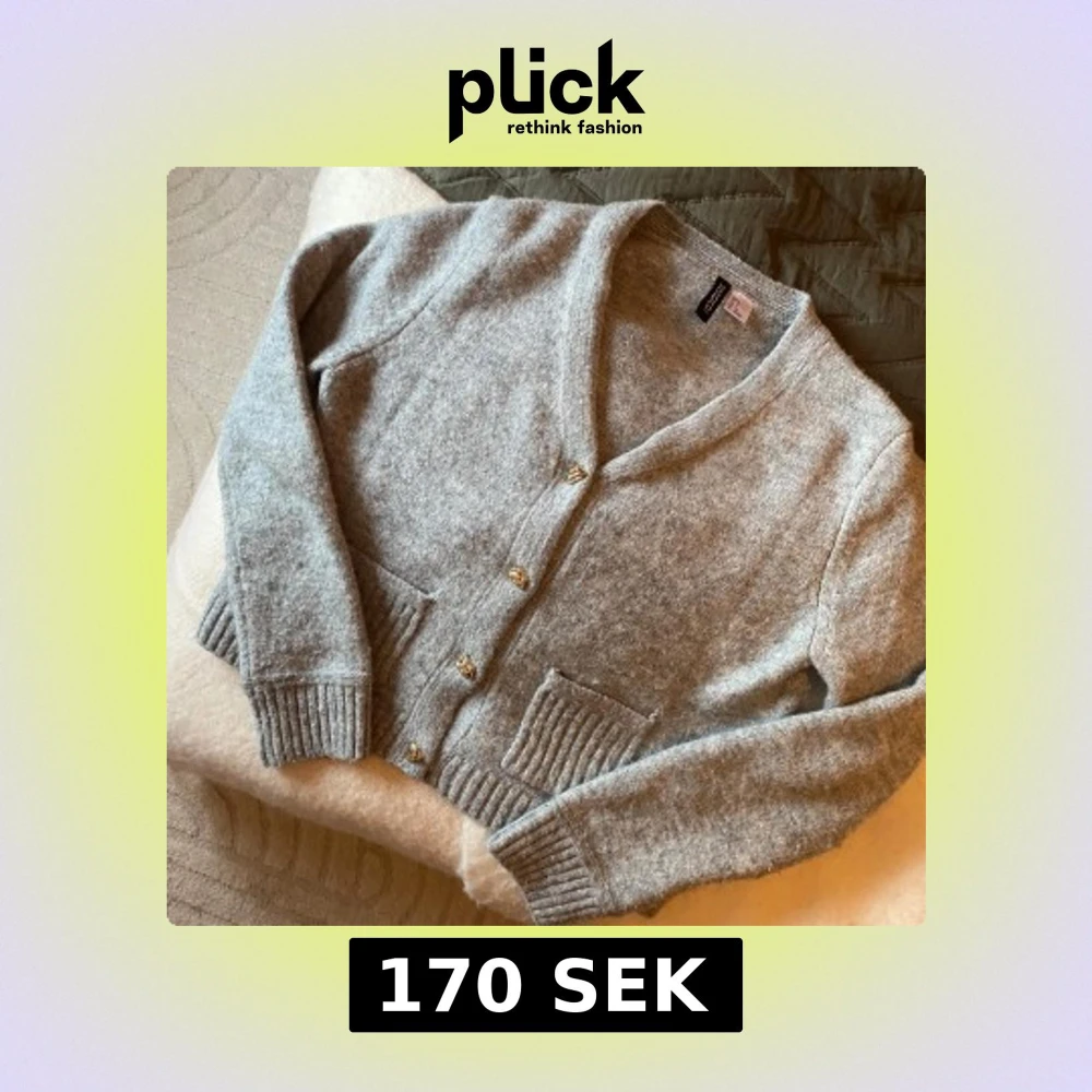 Mysig ljusgrå kofta från H&M med snygga guldiga knappar och ribbade detaljer på fickorna och nederkanten. Koftan har långa ärmar och är stickad i ett mjukt material. Inga defekter och näst intill helt oanvänd. Skriv för fler bilder och vid frågor☺️