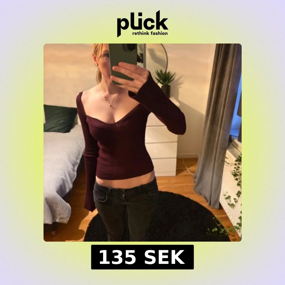 Säljer en snygg vinröd ribbad topp med v-ringning. Storlek S, använt fåtal gånger, väldigt bra skick!!