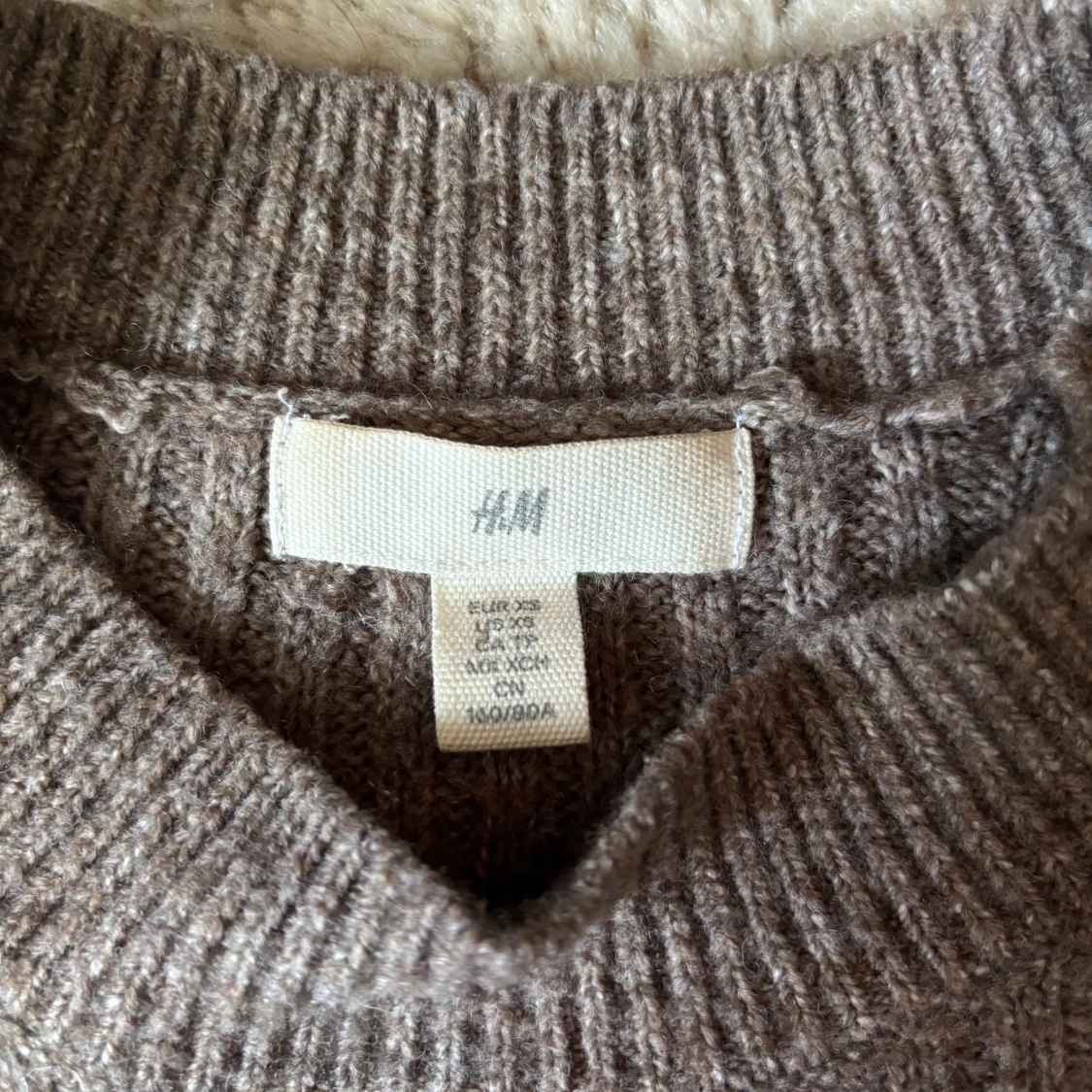 Mysig brun ribbstickad tröja från H&M med rund halsringning och långa ärmar. Perfekt för kyligare dagar och enkel att matcha med olika outfits.