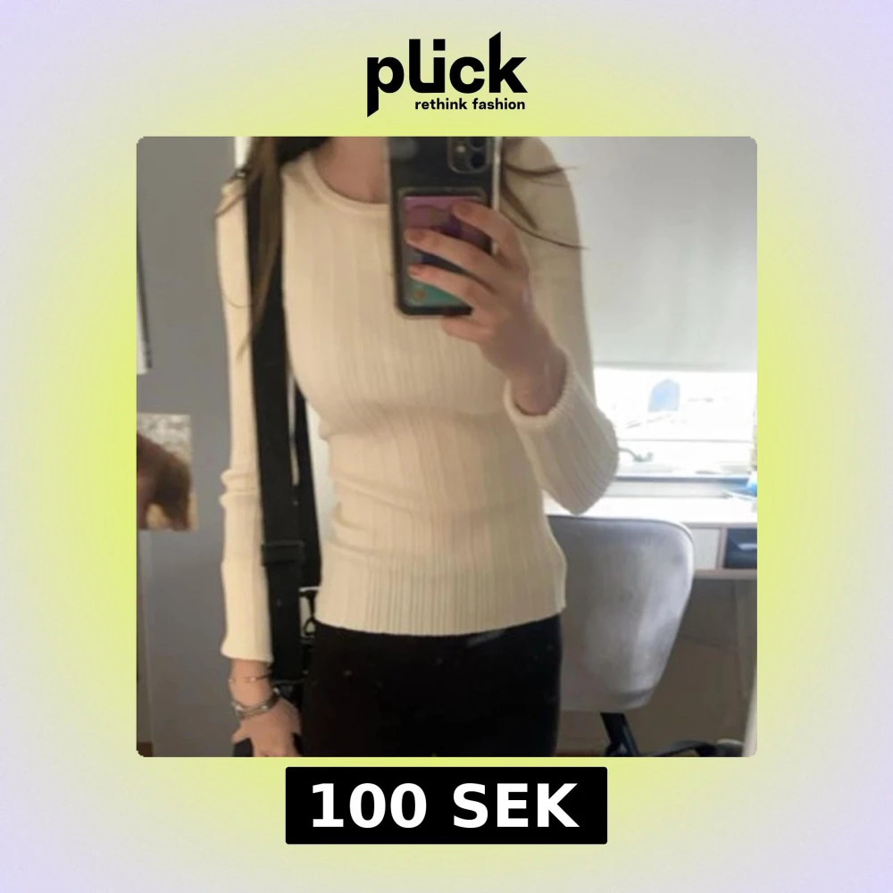 Säljer en vit ribbad långärmad tröja från H&M. Tröjan har en tight passform och är tillverkad i mjukt material som sitter skönt mot kroppen. Perfekt att styla med jeans eller kjol.