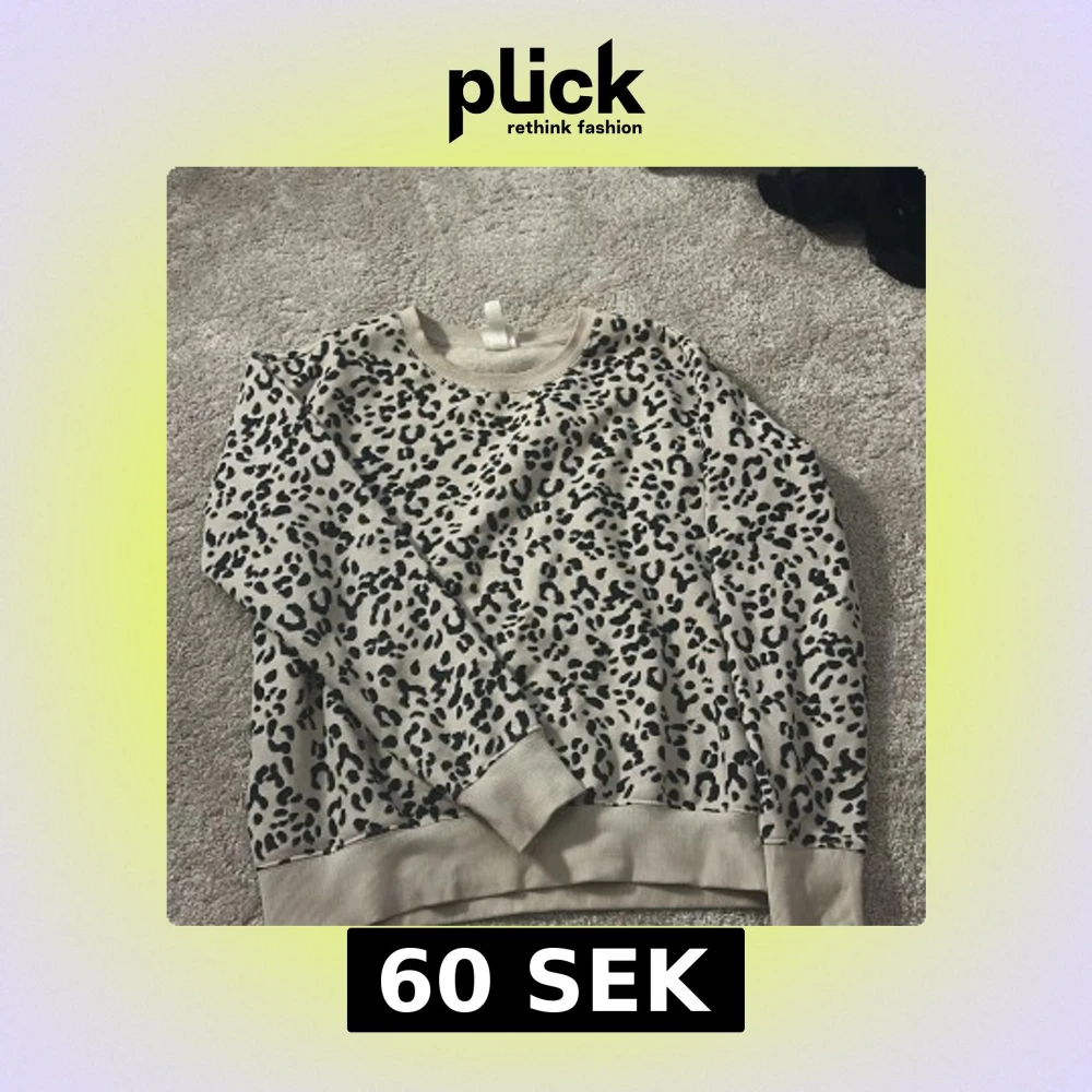 Säljer en beige sweatshirt från H&M med svart leopardmönster. Tröjan har rund halsringning, ribbade muddar vid ärmslut och nederkant samt lång ärm. Perfekt för en trendig och avslappnad stil.