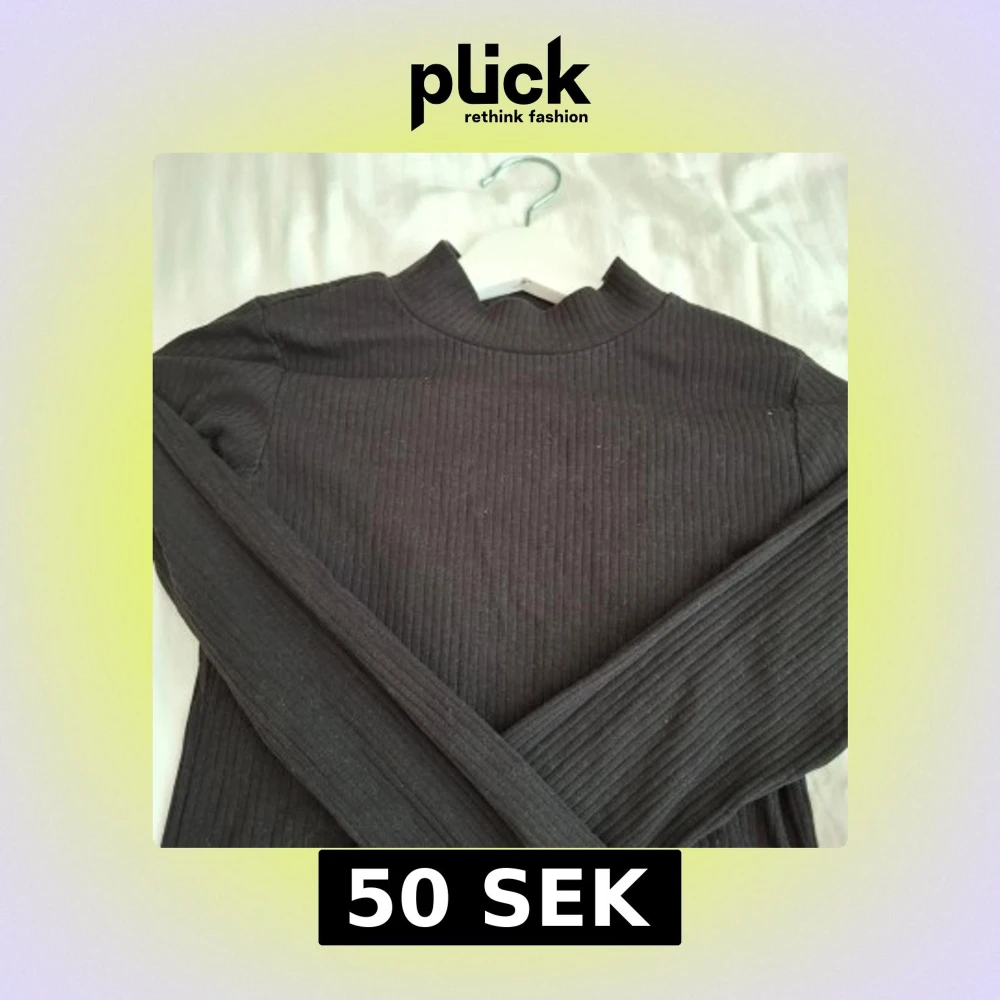 Svart långärmad tröja från H&M med ribbad struktur och hög hals. Enkel och stilren modell som passar perfekt till många olika outfits. Mjuk och skön att ha på sig.