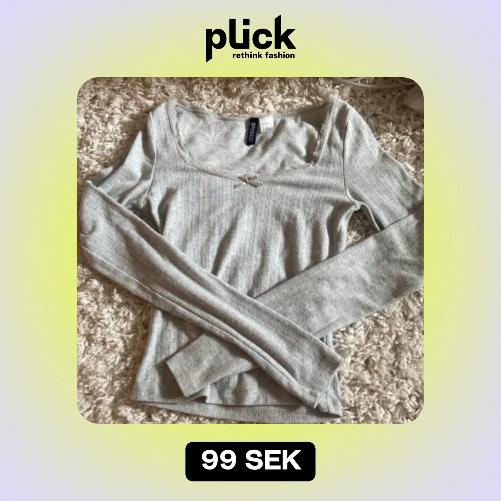 Säljer en superfin grå ribbad tröja från H&M Divided. Den är i storlek XS och har långa ärmar. Tröjan har en söt rosett framtill och spetskant. Jag har klippt av sidenbanden som brukar sitta över axeln då den kliade. Inga fläckar.