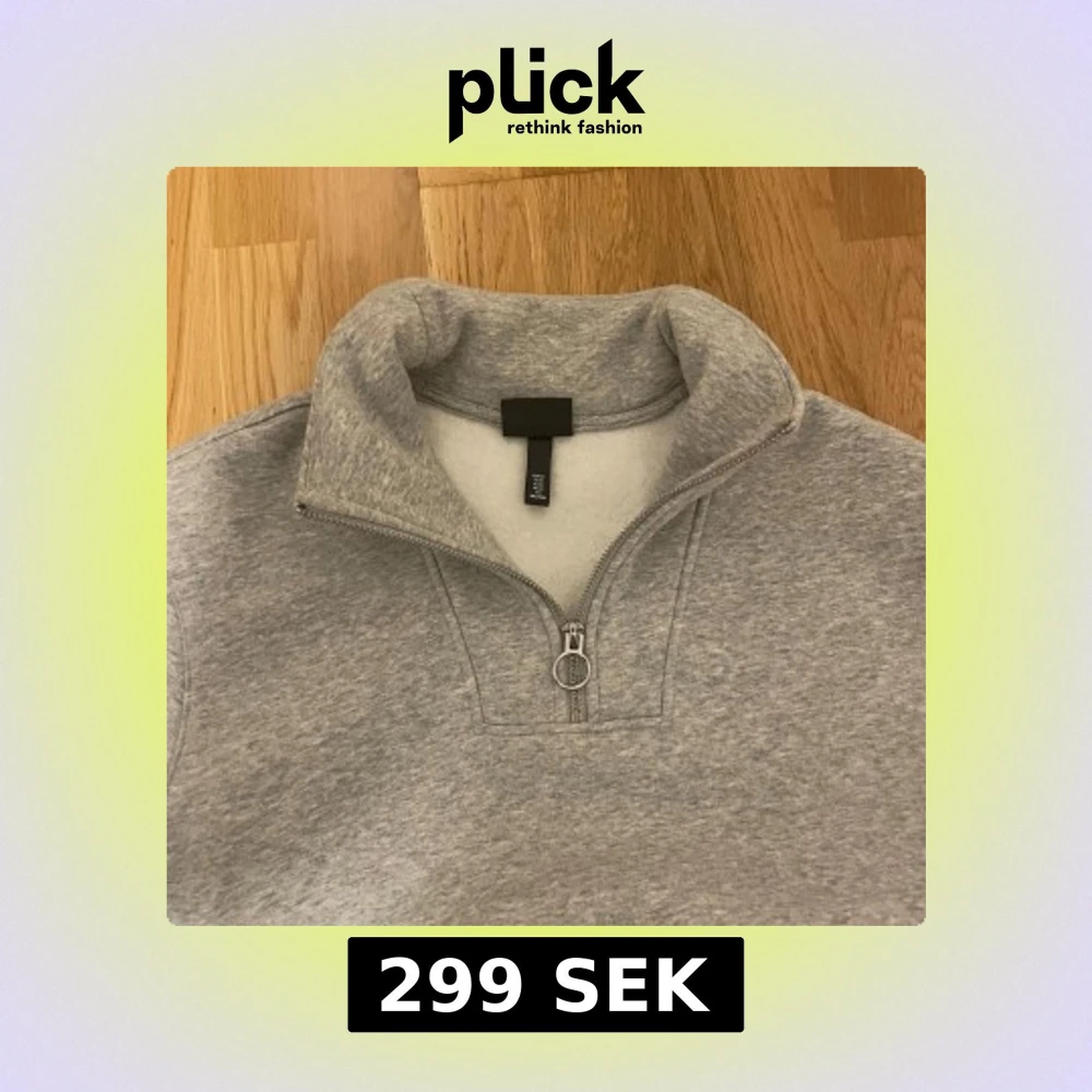Säljer en grå sweatshirt från H&M med halv dragkedja och hög krage. Tröjan har långa ärmar och ribbade muddar vid ärmslut och nederkant. Perfekt för en avslappnad och stilren look.
