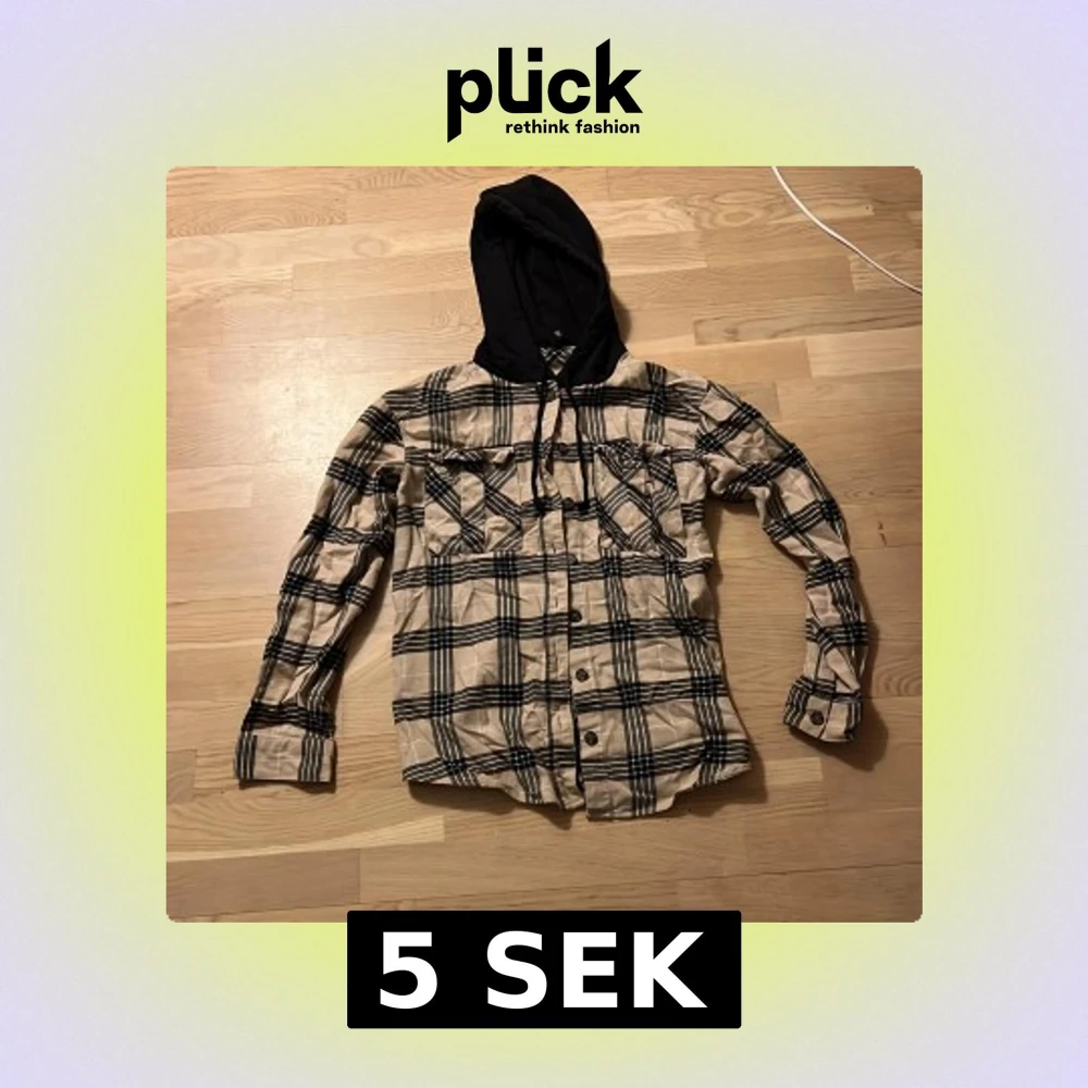Snygg rutig skjorta från HM med svart huva. Skjortan har långa ärmar och knappar framtill. Perfekt för en avslappnad stil.