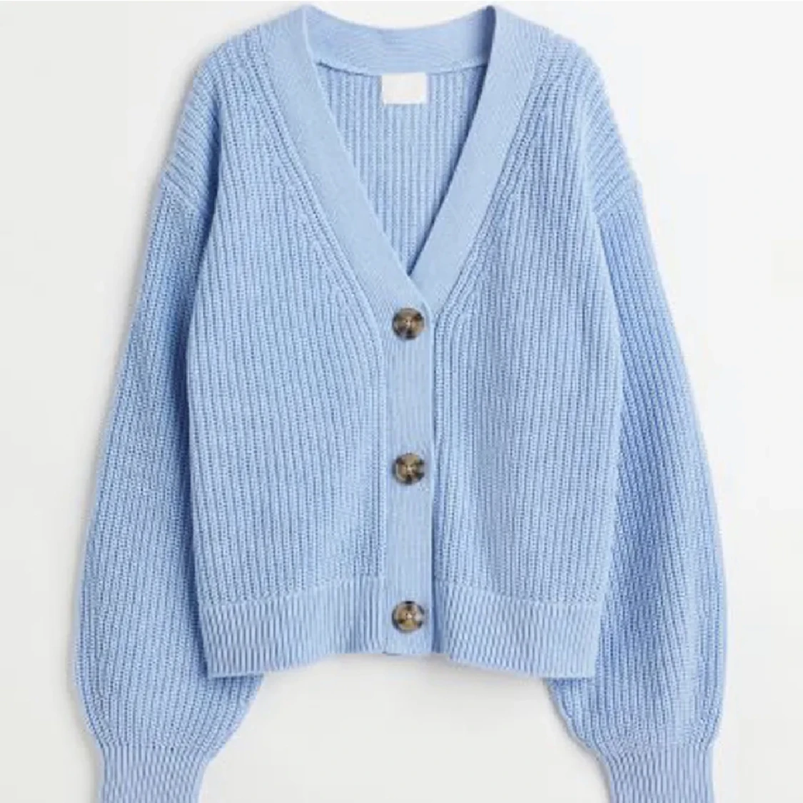 Super skön och mysig blÄ cardigan frÄn H&M i storlek XS, men passar Àven S! NÀstintill oanvÀnd